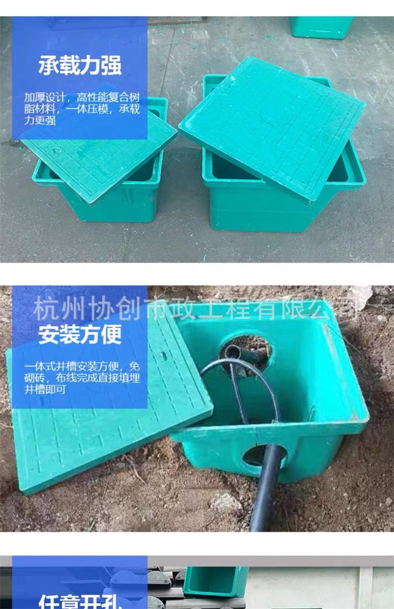 Tapa de alcantarilla de resina compuesta pozo de roscado cuadrado punto débil farola pozo de limpieza servicio pesado PE verde sin ladrillo corriente débil tapa de alcantarilla
