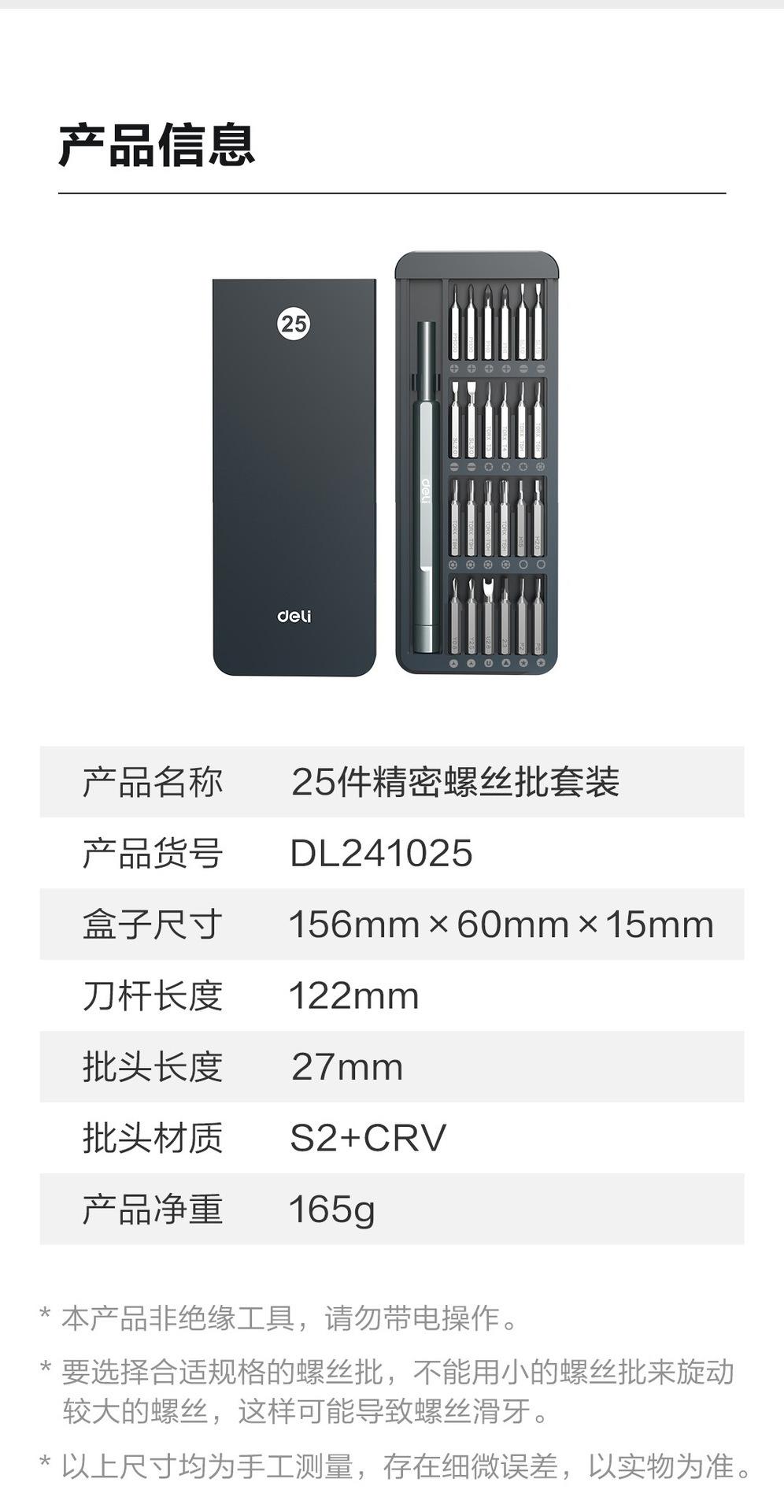 Deli DL241025 Destornillador de Precisión Juego de 25 piezas Desmontaje de Teléfono Móvil Laptop Destornillador Pequeño Venta al por Mayor
