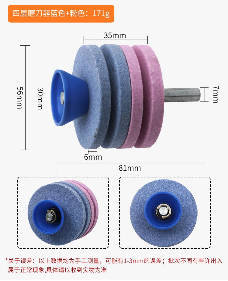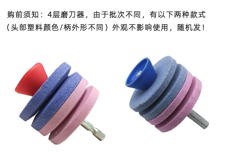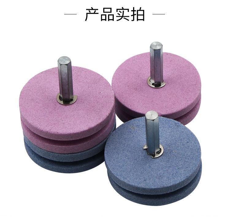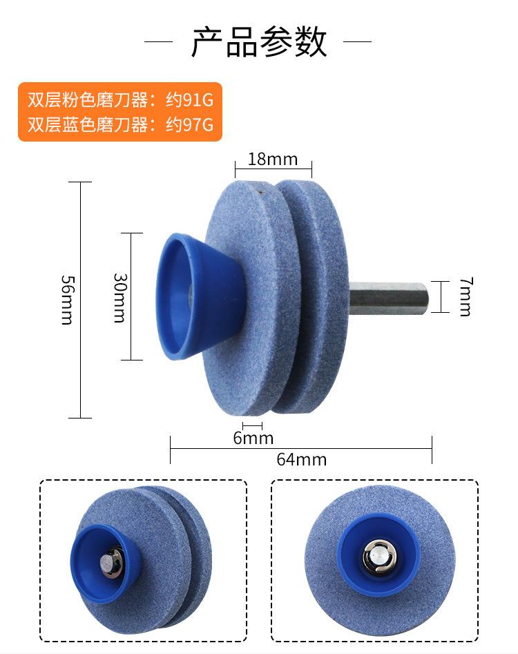 Material del producto: La parte superior es de plástico, muela azul: corindón marrón, muela rosa: corindón de cromo, mango: hierro galvanizado.