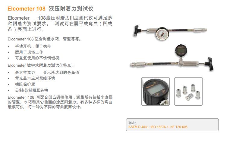 Comprobador de adherencia hidráulica Elcometer 108Muy versátil para satisfacer una amplia gama de requisitos de pruebas de adhesión. Las pruebas pueden realizarse en superficies planas o curvas (cóncavas o convexas).