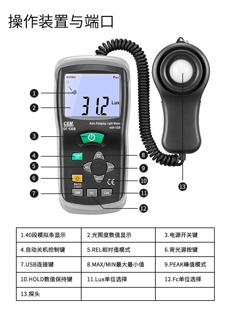 Fotómetro portátil CEM Xichang, iluminómetro, medidor de brillo, fotómetro iluminómetro DT-1309