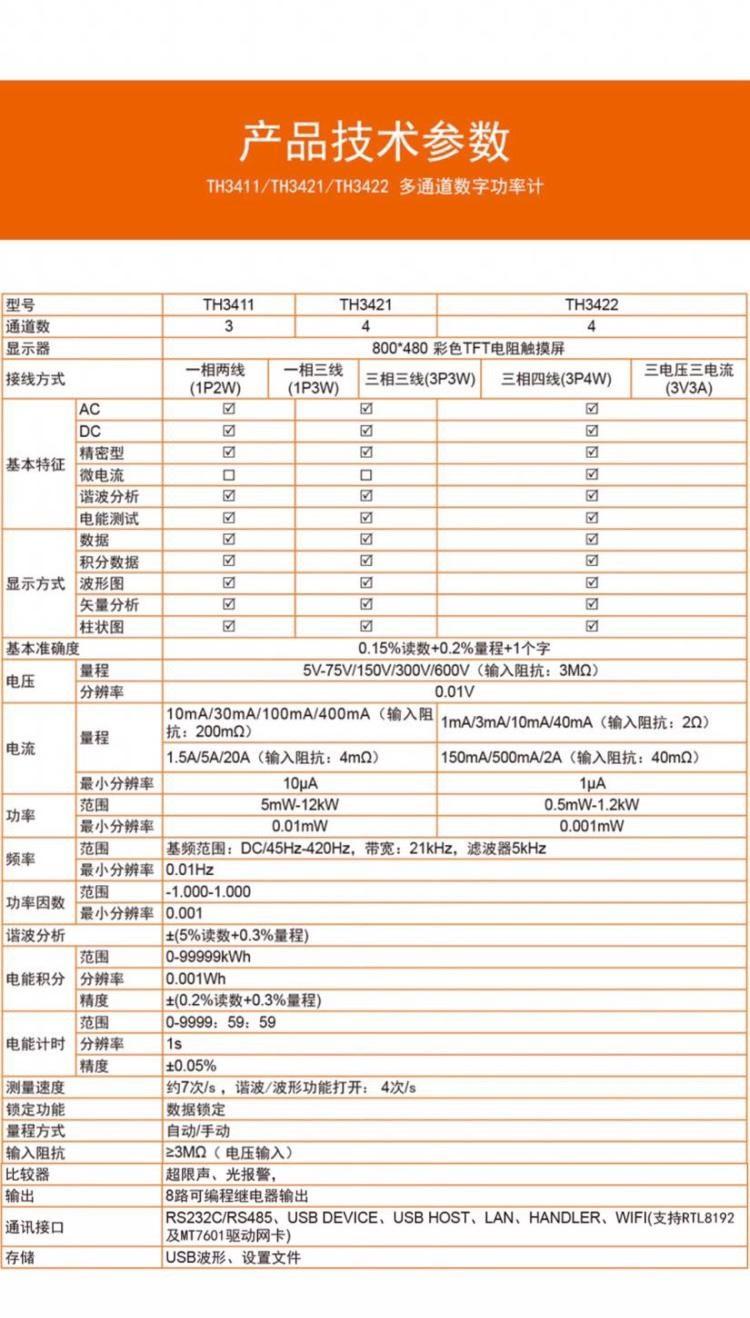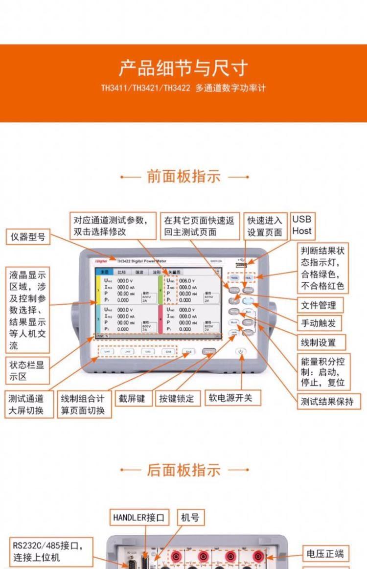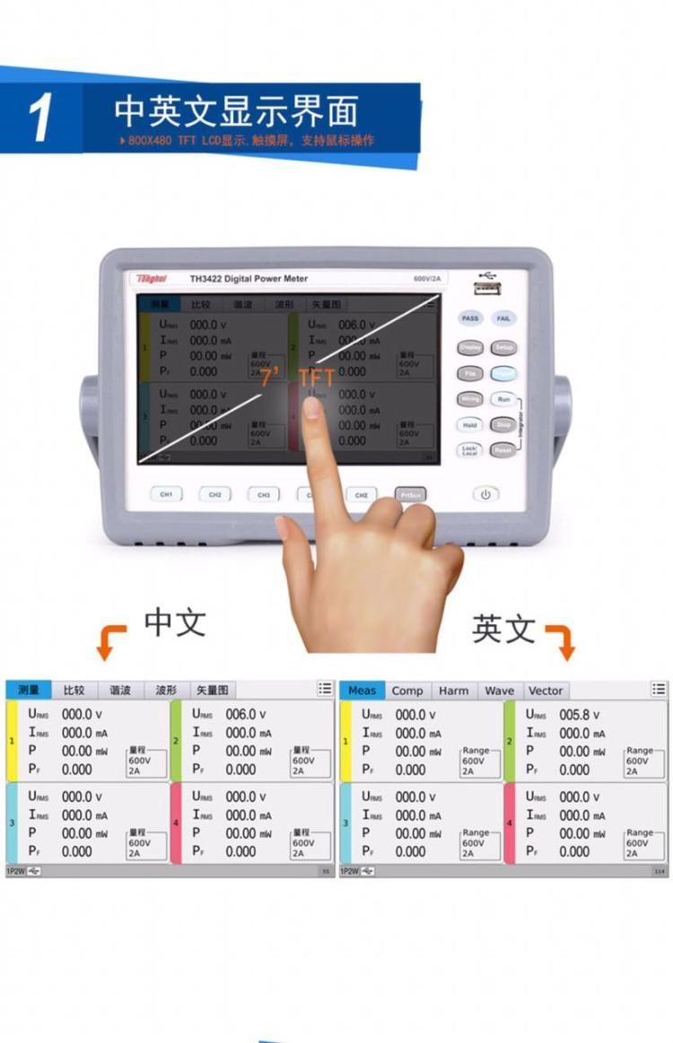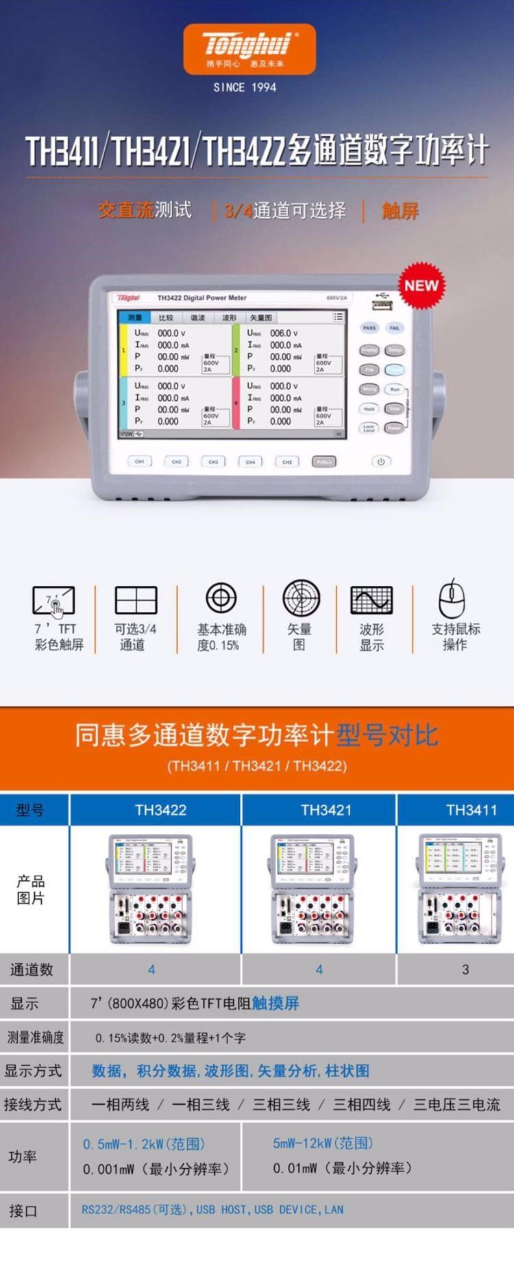Analizador de potencia digital de corriente pequeña Tonghui TH3411, instrumento de medición de 34 canales, TH3422
