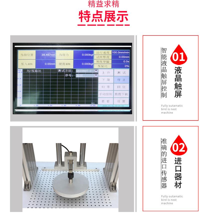 Máquina de prueba de dureza por indentación de esponja, instrumento de prueba de fatiga por indentación de esponja, máquina de prueba de esponja de poliuretano fija