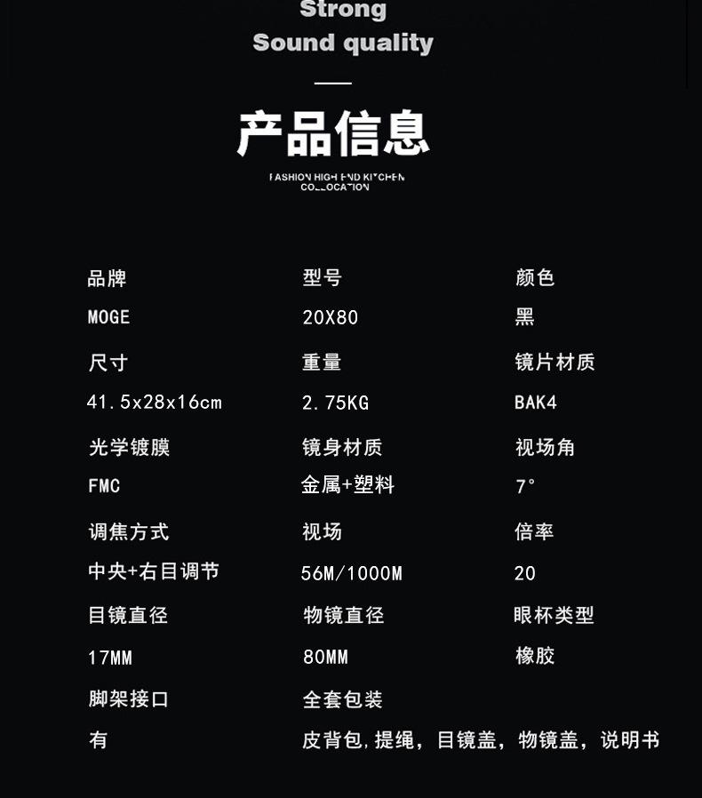Mogo 20x 80 binoculars, 20x 80 binocular L-365A1.6 meter tripod
