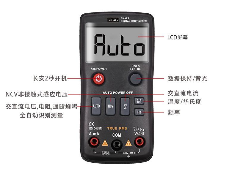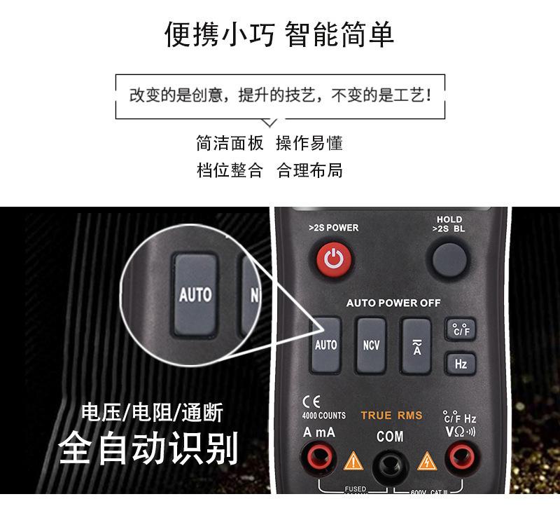 Multímetro de alta precisión, rango automático, inteligente, anti-quemaduras, para electricistas, mantenimiento, prueba de encendido y apagado, portátil, digital, universal.