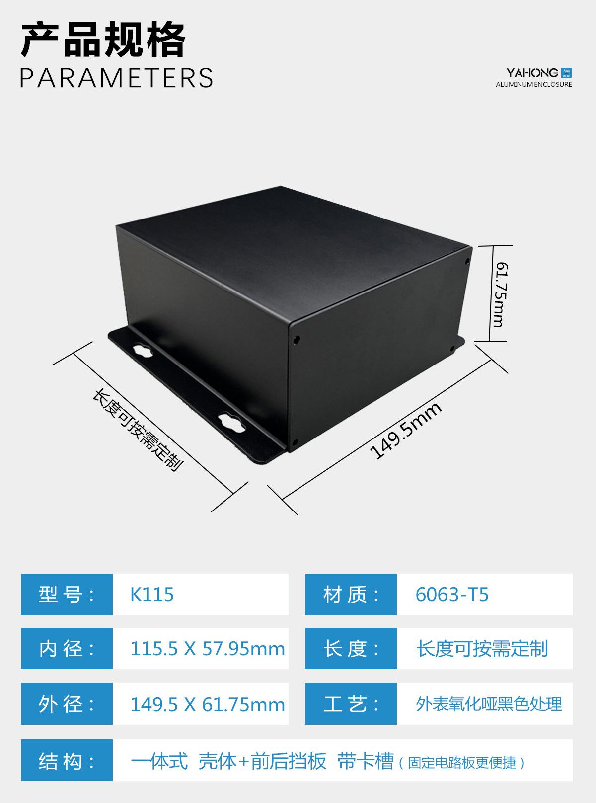 Carcasa de chasis de aleación de aluminio de 150*62, perfil de aluminio, molde macho, caja de alimentación, carcasa de aluminio, carcasa de instrumento, caja de control industrial