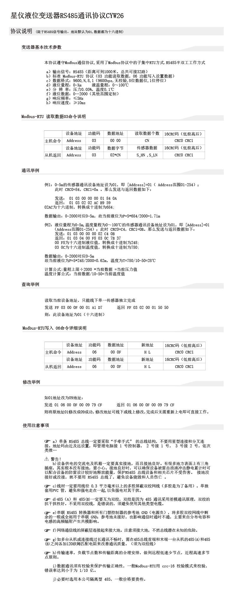 Transmisor de Nivel de Instrumento Estrella Protocolo de Comunicación Rs485 Cyw26