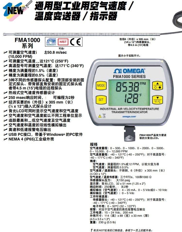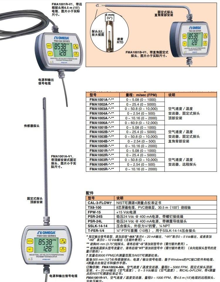 Transmisor anemómetro American Omega FMA1005R-MA, FMA1005R-V1, FMA1005R-V2-S