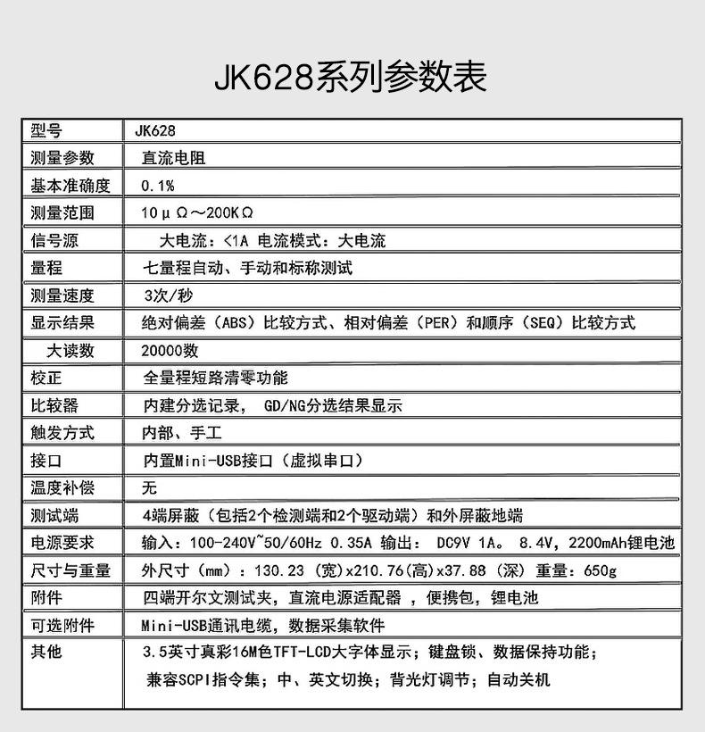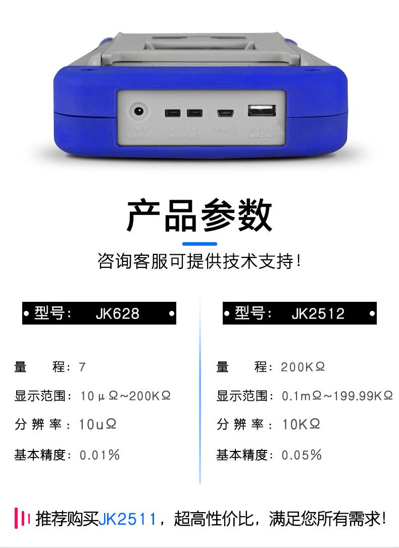 Changzhou Jinke JK628 probador de resistencia baja de CC de mano milióhmetro microóhmetro medidor de baja resistencia