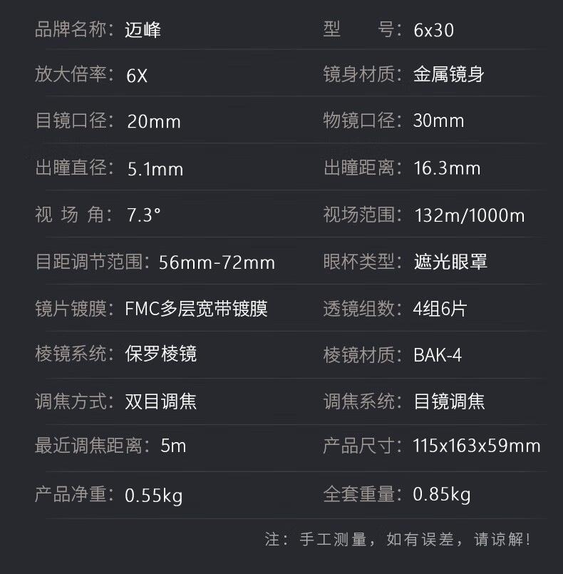 Maifeng nuevo telescopio binocular de alta potencia HD metal 6x30 visión nocturna con poca luz con gafas de telémetro Exterior