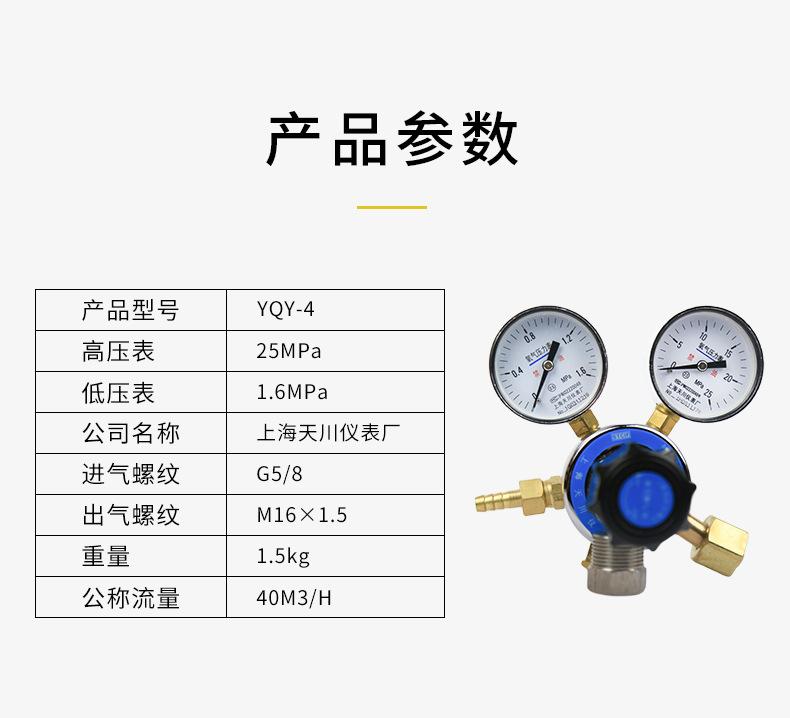Reductor de presión de oxígeno YQY-4, manómetro de oxígeno de 1,6 x 25 MPa, regulador de presión de gas, Shanghai Tianchuan