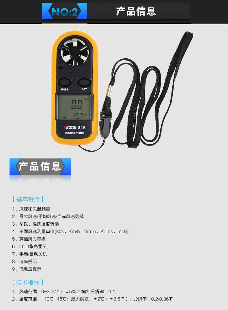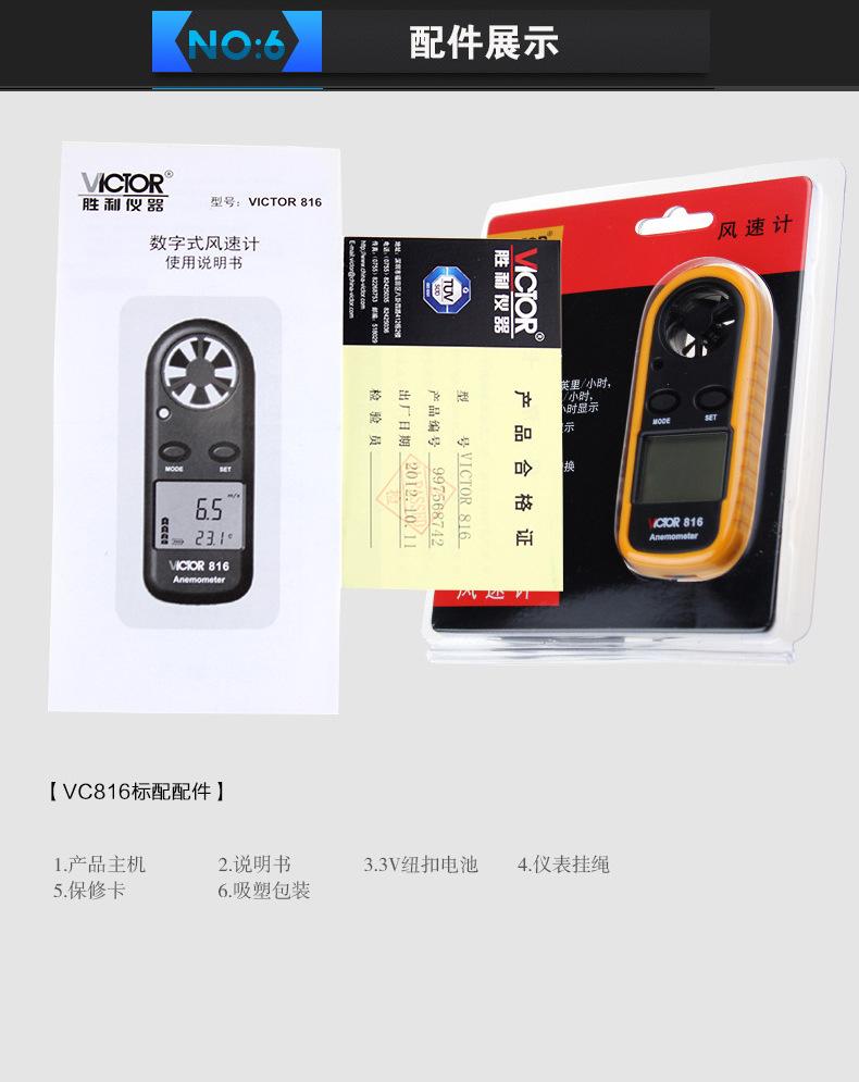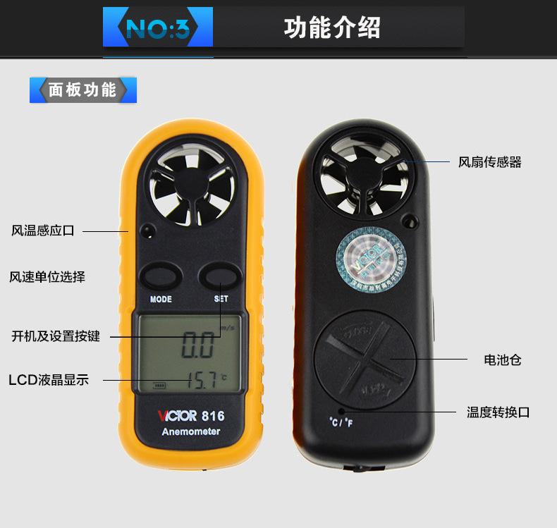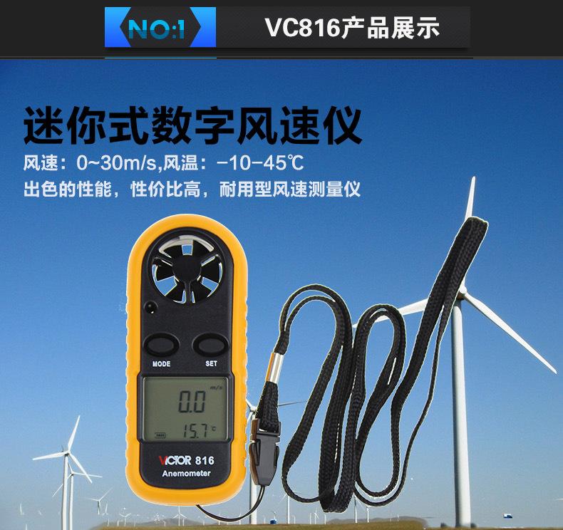 Anemómetro Victory VC816 Anemómetro Anemómetro Probador de velocidad del viento y temperatura del aire Anemómetro digital