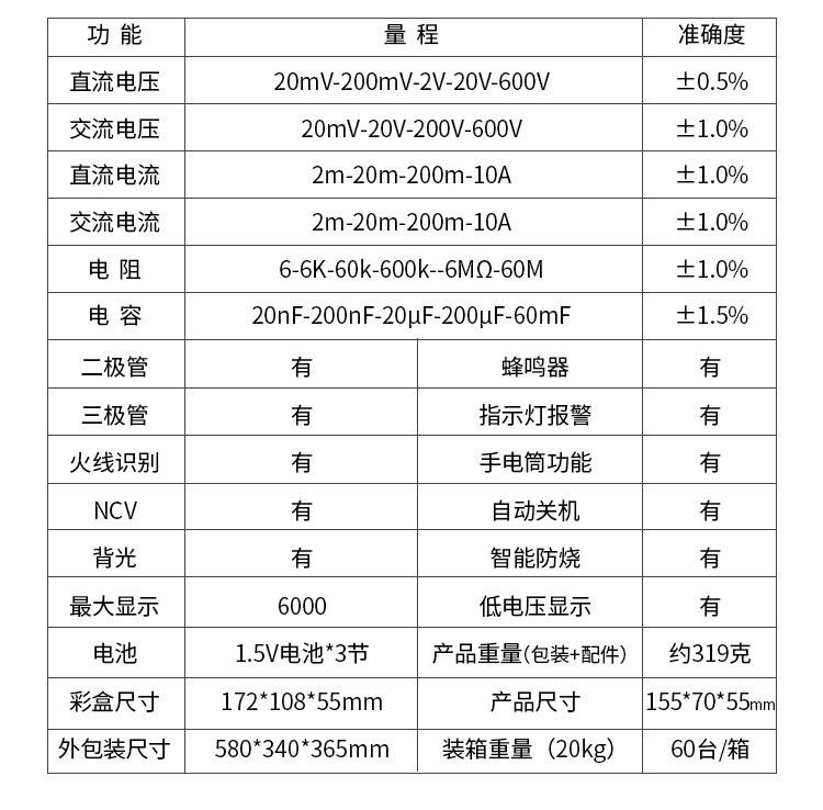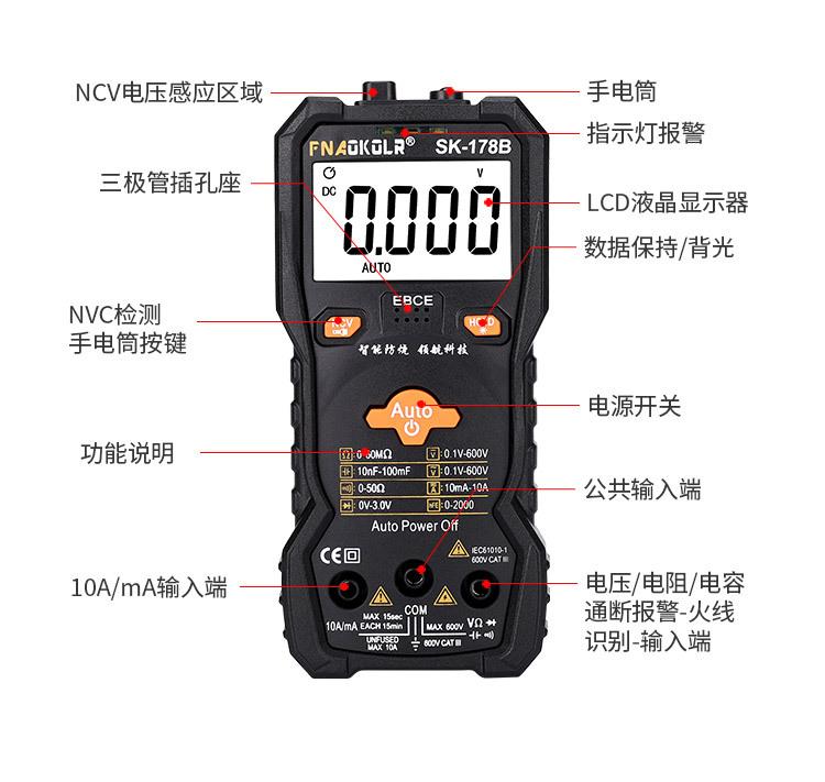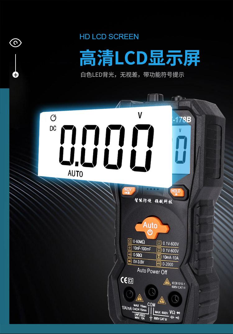Multímetro digital inteligente anti-quemaduras con identificación automática sin desplazamiento, pantalla digital multifunción de bolsillo, medidor universal