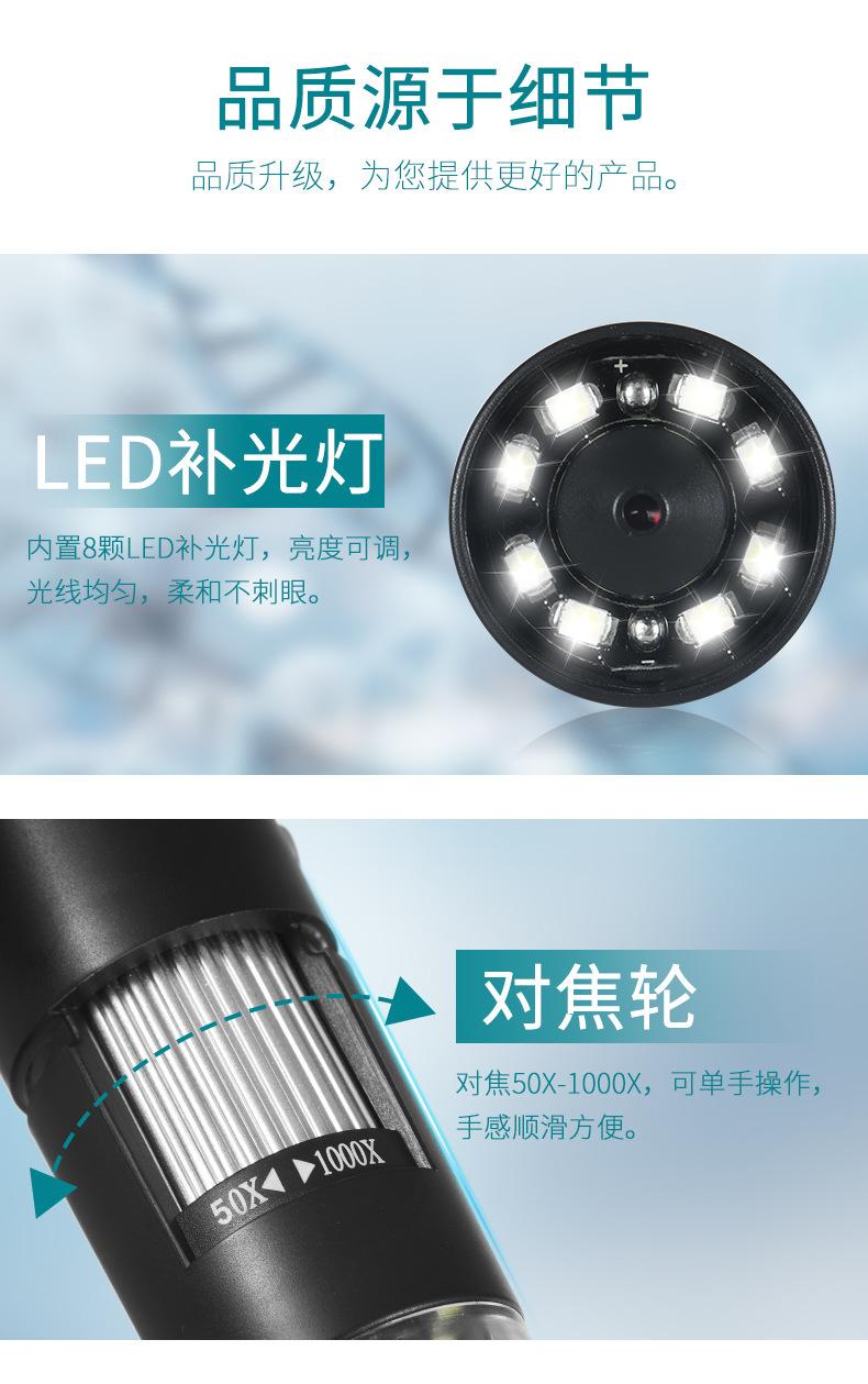 Distancia de transmisión WiFi: 0-10m,Aumento: 50X-1000X