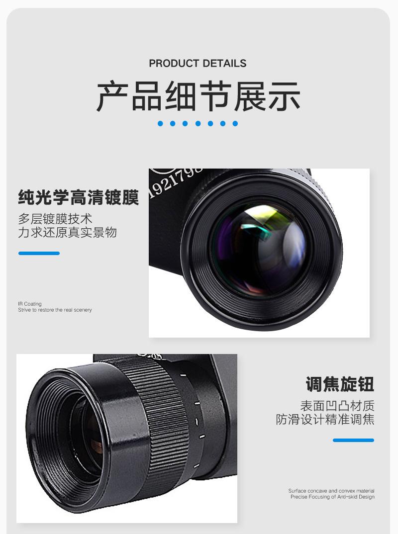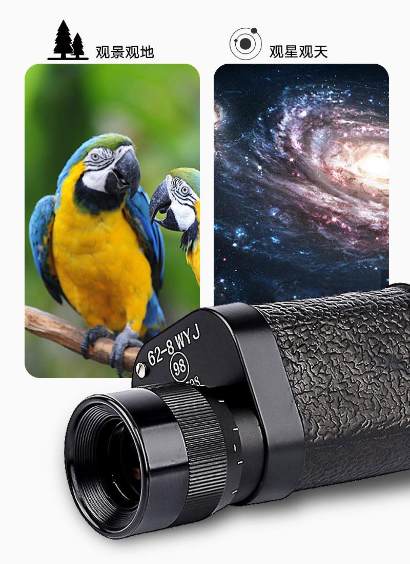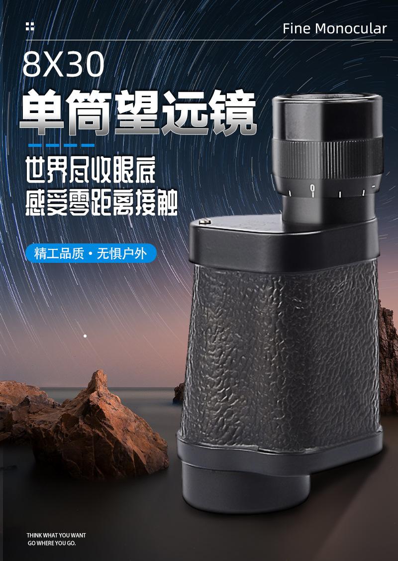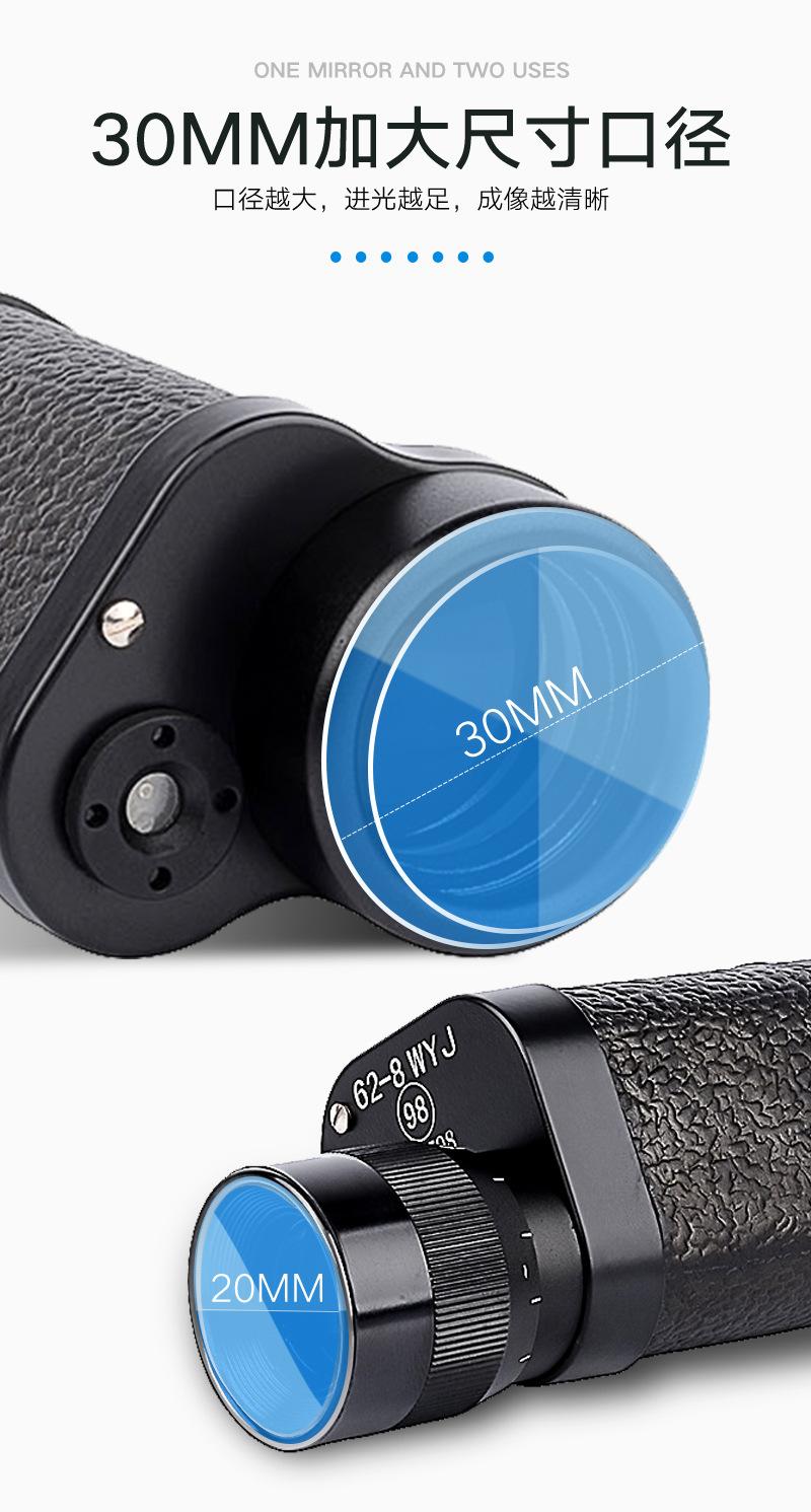 Telescopio monocular portátil 62-estilo 8x30 al por mayor de alta potencia y alta definición, visión nocturna de bajo brillo no infrarrojo, rendimiento de imagen a color