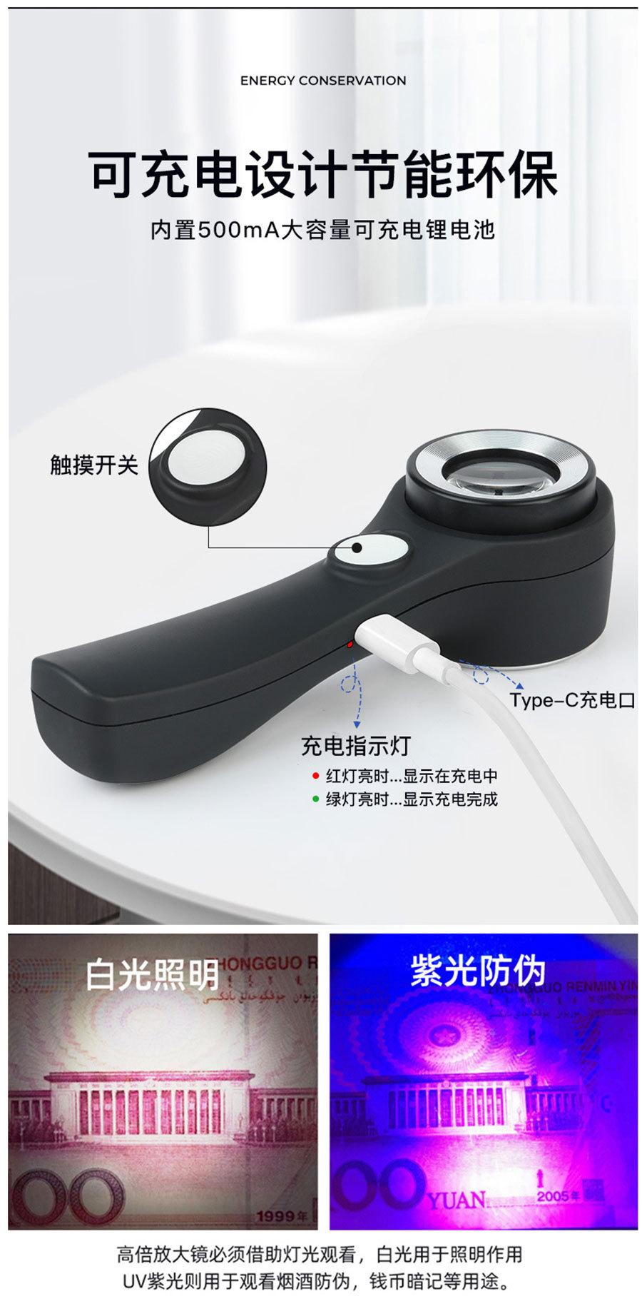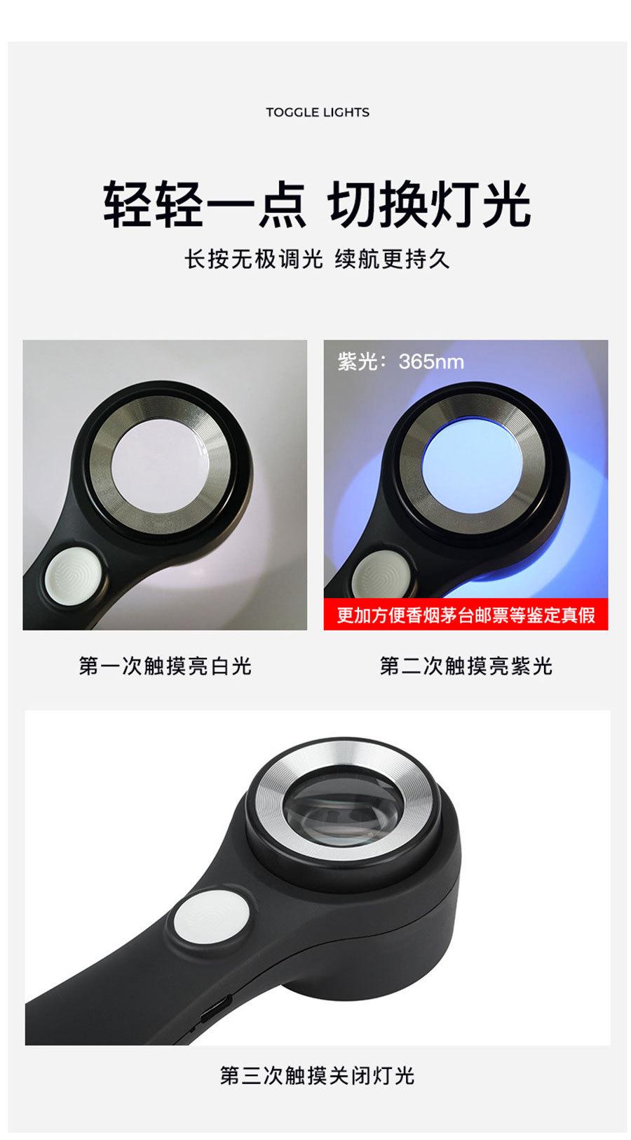 Nombre del producto: Lupa LED táctil recargable