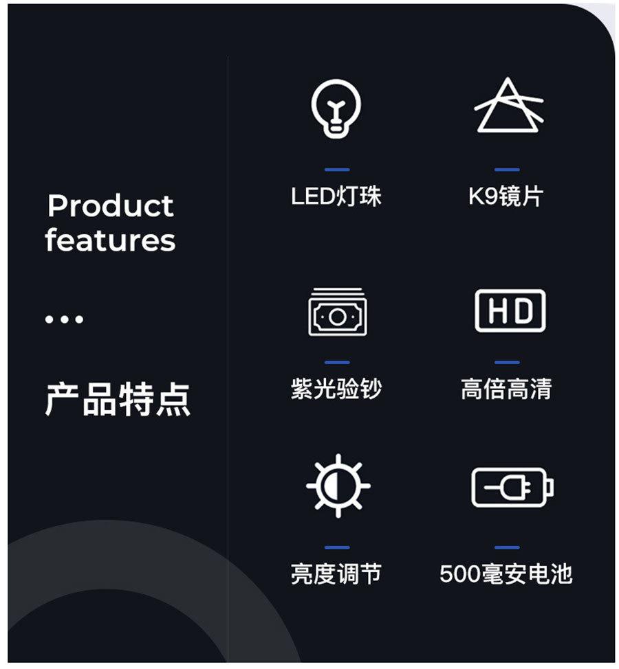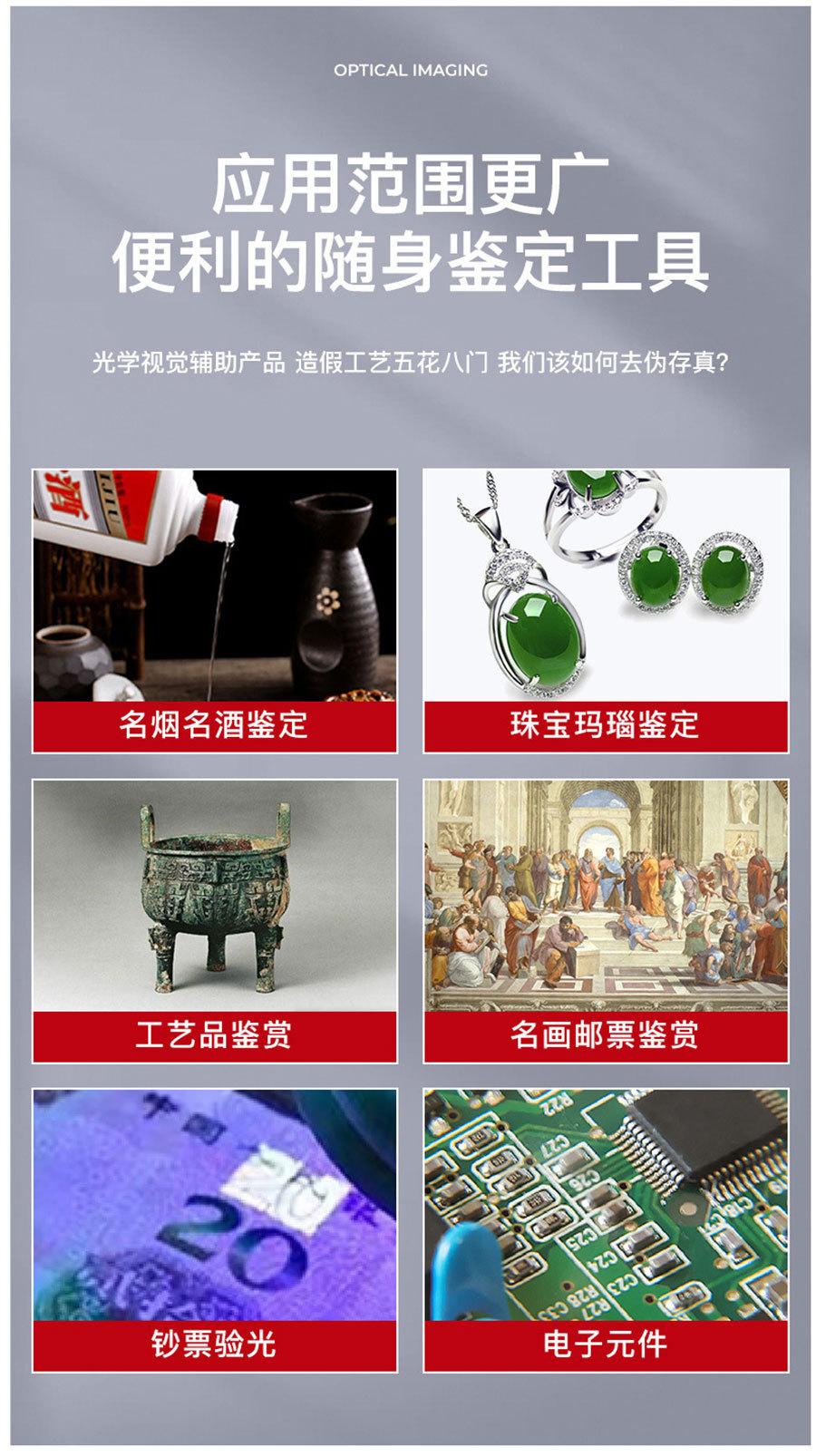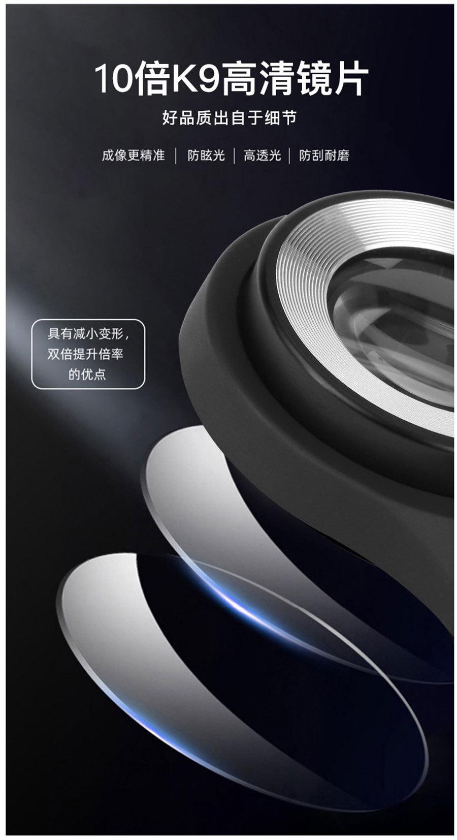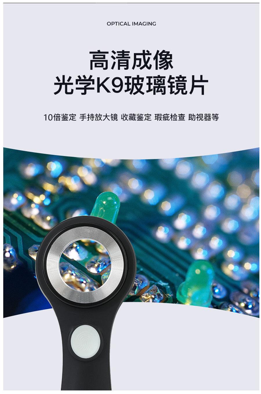 Lista de empaque: lupa + manual de instrucciones + bolsa de tela + paño de limpieza + cable de carga USB + caja de color