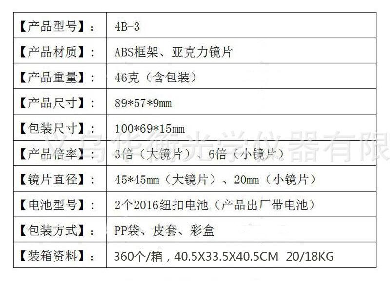 Espejo de lectura portátil cuadrado acrílico 4B-3 HD para madre e hijo con luz LED Nombre Tipo Lupa de 3 aumentos