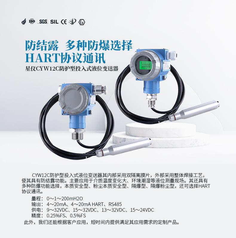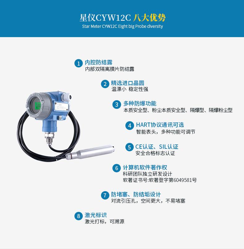 Transmisor de nivel de líquido protector Star CYW12C, medidor de nivel HART, sensor de nivel de agua de entrada a prueba de humedad y explosiones