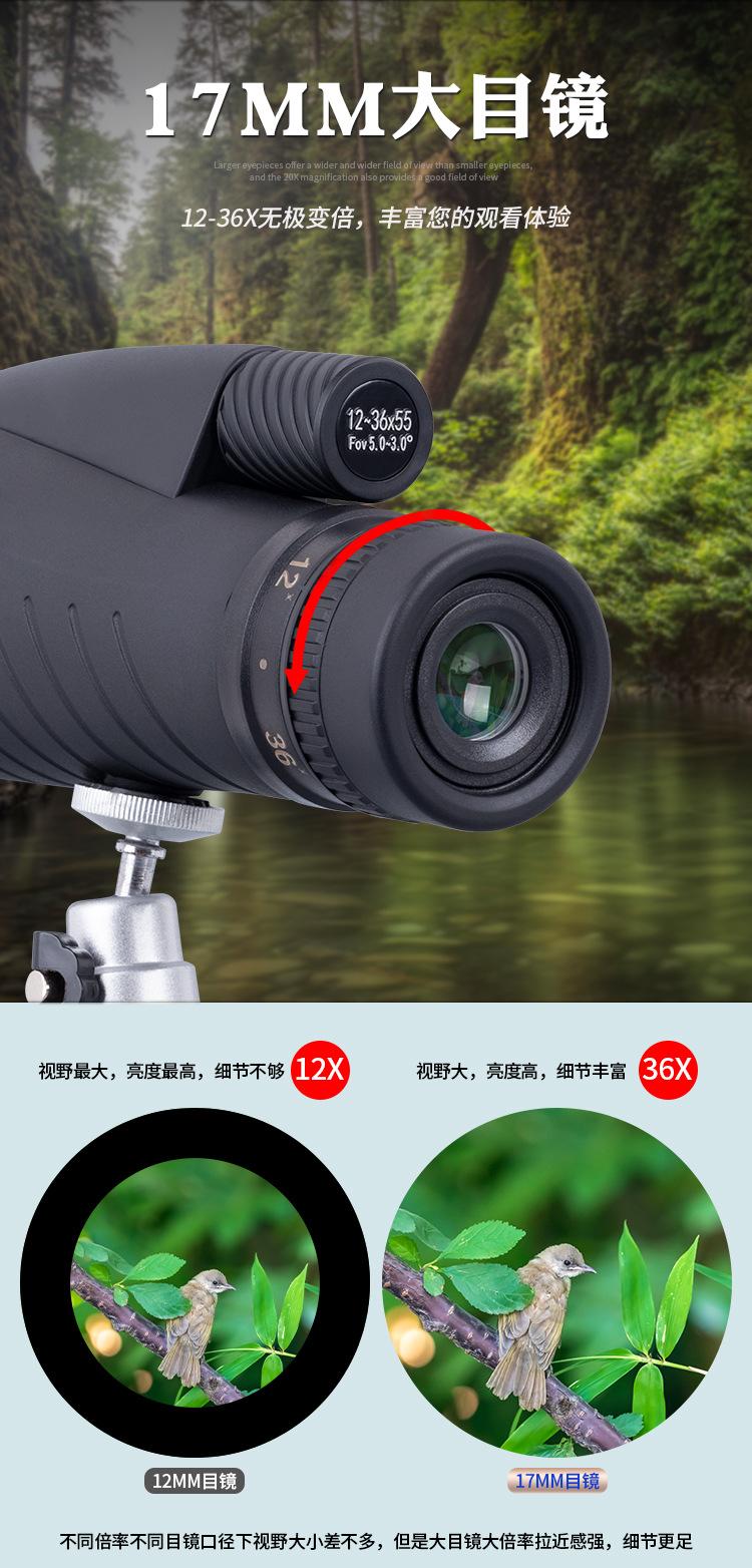 Telescopio monocular con zoom transfronterizo para observación al aire libre, telescopio con zoom HD 12-36X55, telescopio de concierto de alta potencia