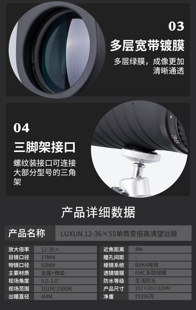 12-36x 55 Telescope, 12-36x 55 telescope + mobile phone clip + tripod