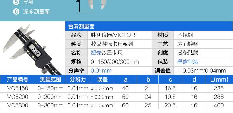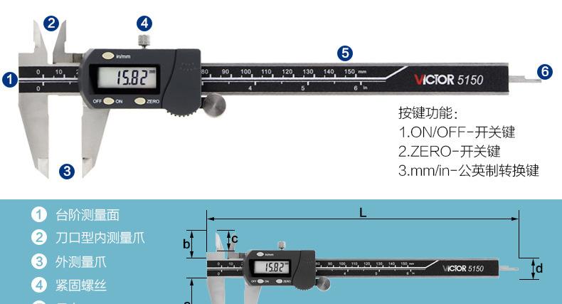 Calibrador Vernier digital con pantalla digital de cuatro instrumentos Victory (pulgada métrica) acero inoxidable 0~300 mm