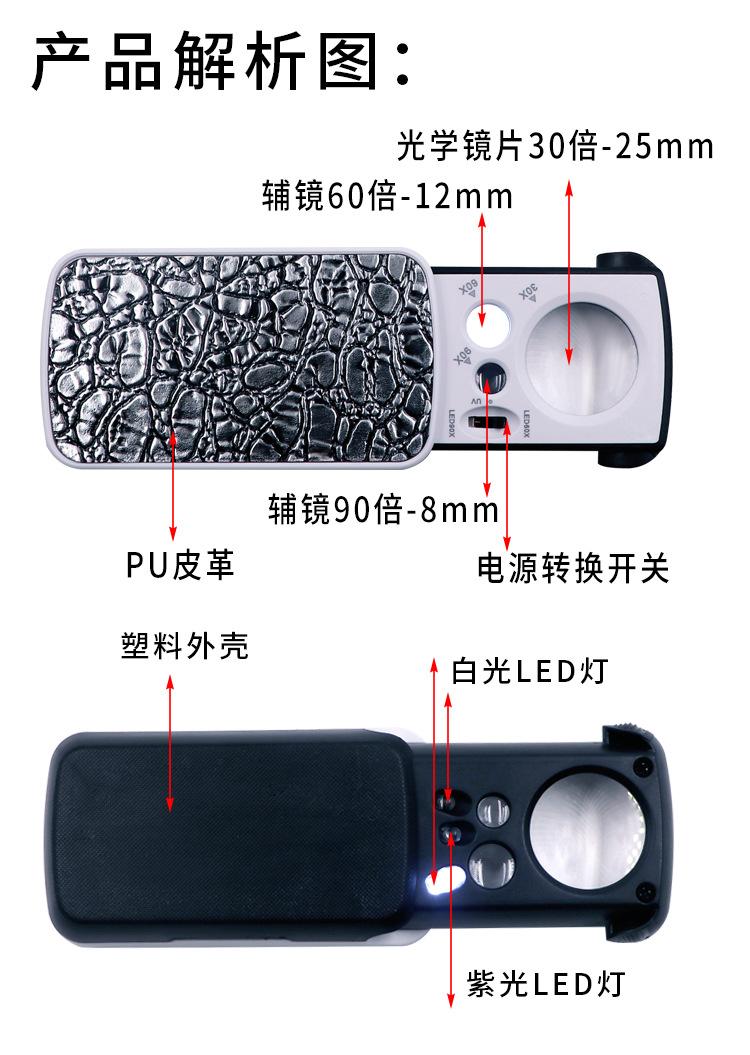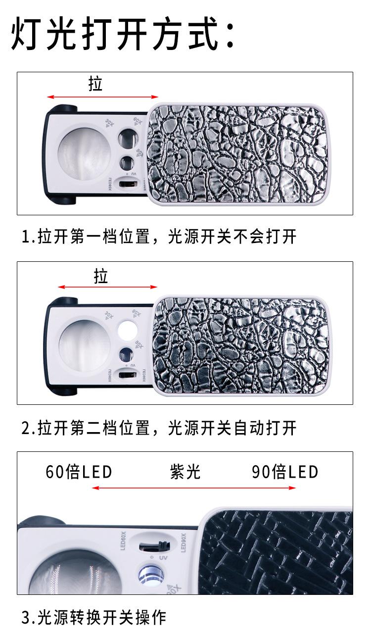 Lupa LED Extraíble Lupa para Joyería Plegable Identificación de Jade Antiguo de Mano con Estilo de Luz
