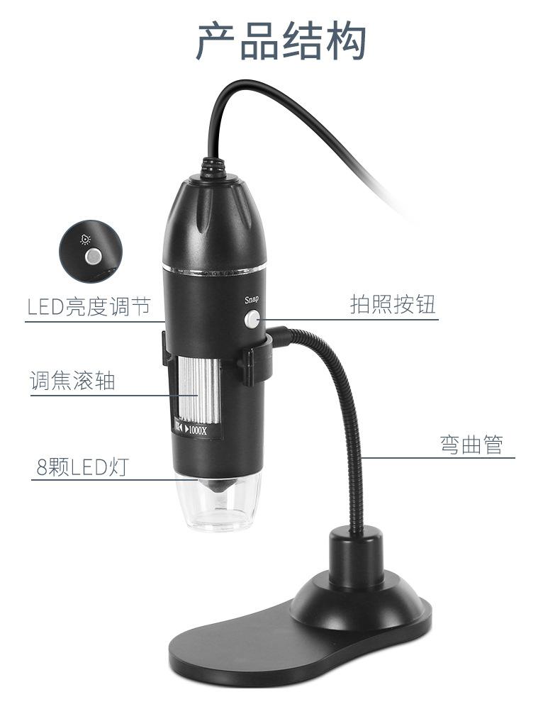 Microscopio digital de mano portátil USB en stock de fábrica se puede conectar a la computadora con soporte de manguera