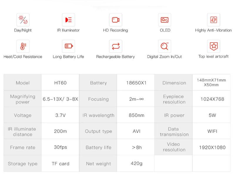 Cámara digital de alta definición con visión nocturna por infrarrojos HT-60 de Yutong, video de doble propósito, día y noche, se puede conectar a la visión nocturna WiFi.