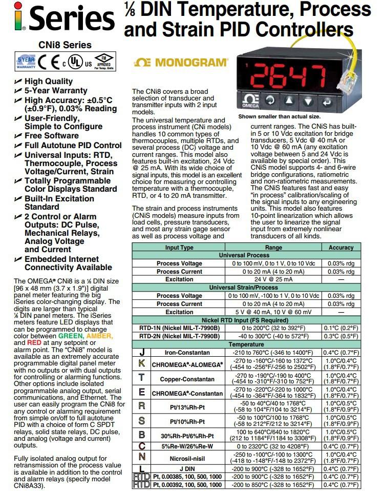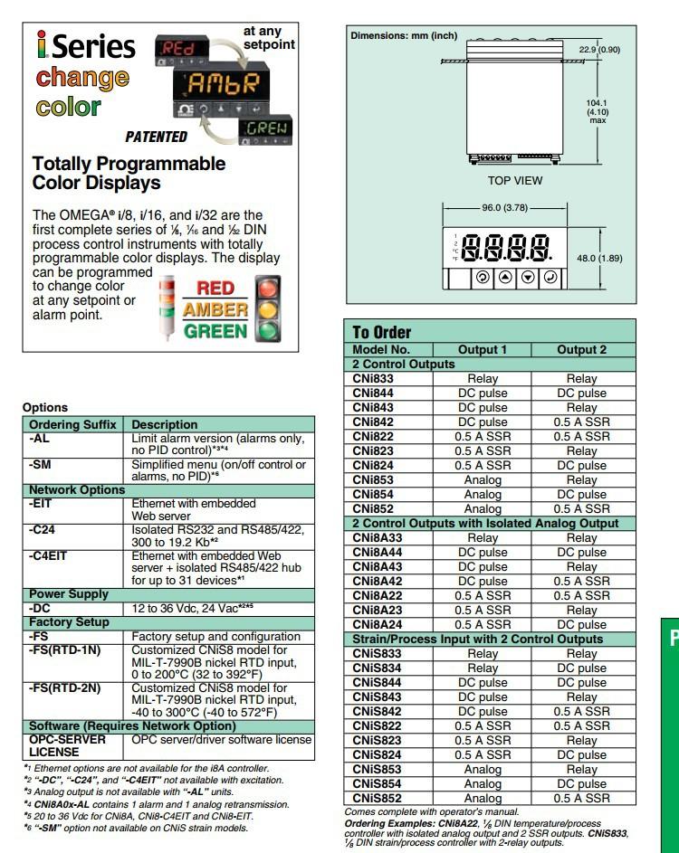 Controlador de termostato Omega de EE. UU. CNIS852, CNIS854-C24-DC-C4EIT-AL-FS