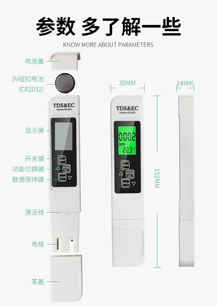 Comercio Exterior Tres en Uno Pluma Tds Detector de Conductividad Ec Pluma para Prueba de Calidad del Agua Doméstica Pluma Doméstica para Prueba de Calidad del Agua Tds