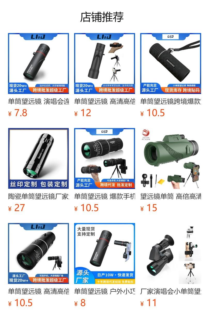 Small corner telescope (Chinese packaging) + mobile phone clip + tripod