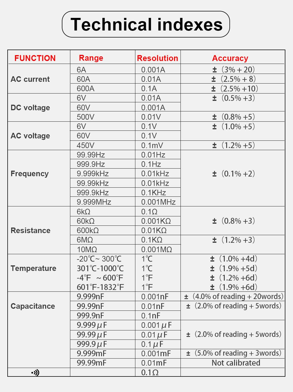 6kΩ/60kΩ/600kΩ/6mΩ/10mohm