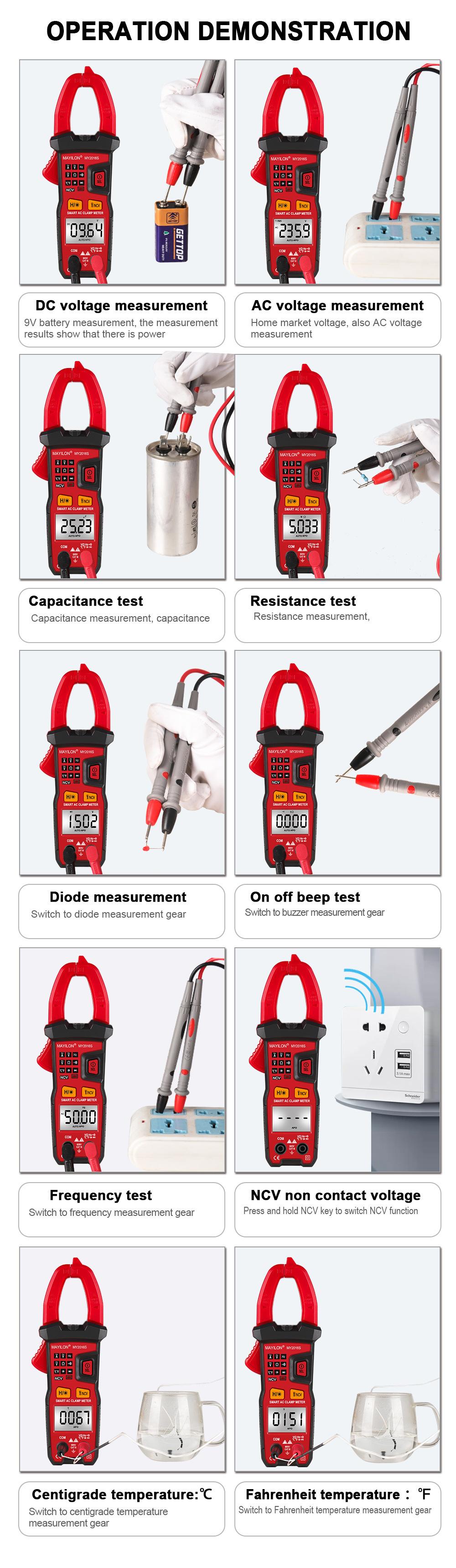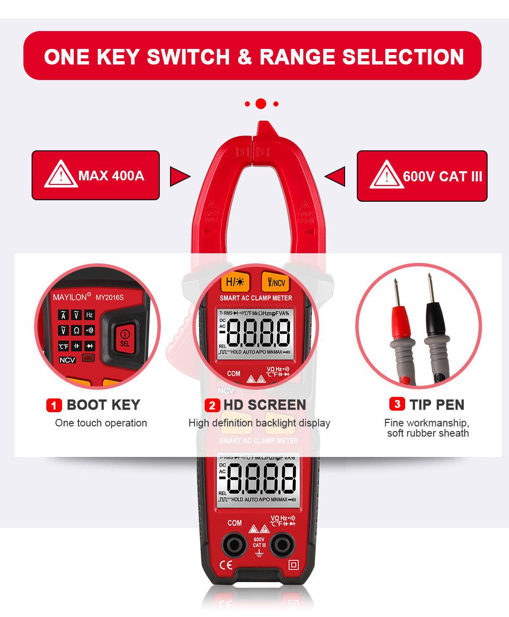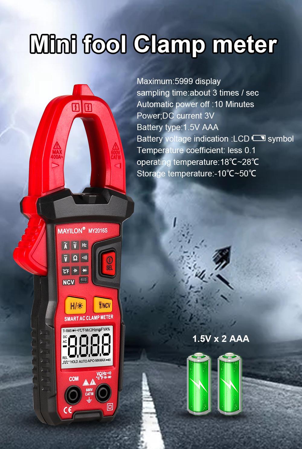 Compra Multímetro de pinza MAYILON MY2016S, medición de identificación automática, pinza amperimétrica CA al por mayor en Joom.pro