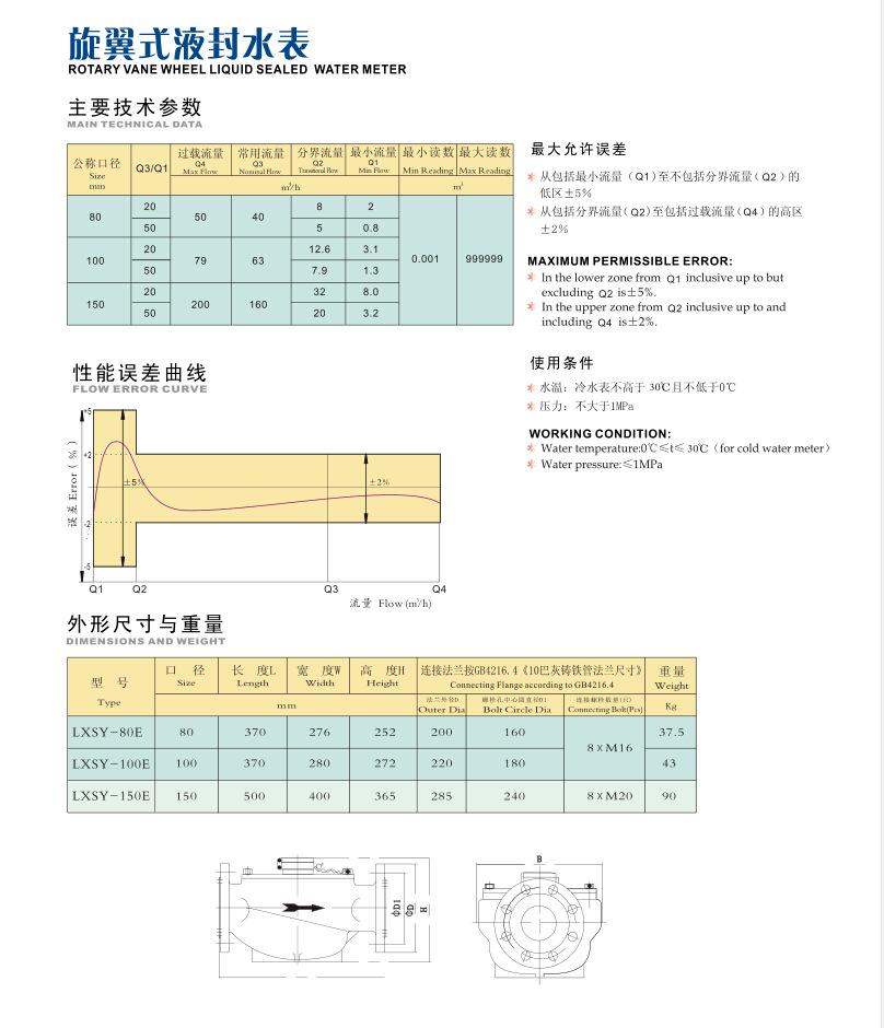 Amico Lxsy-E Carcasa de Hierro Rotor Sello Líquido Industrial Inteligente Medidor de Agua Fría Medidor de Flujo Volumétrico Dn80