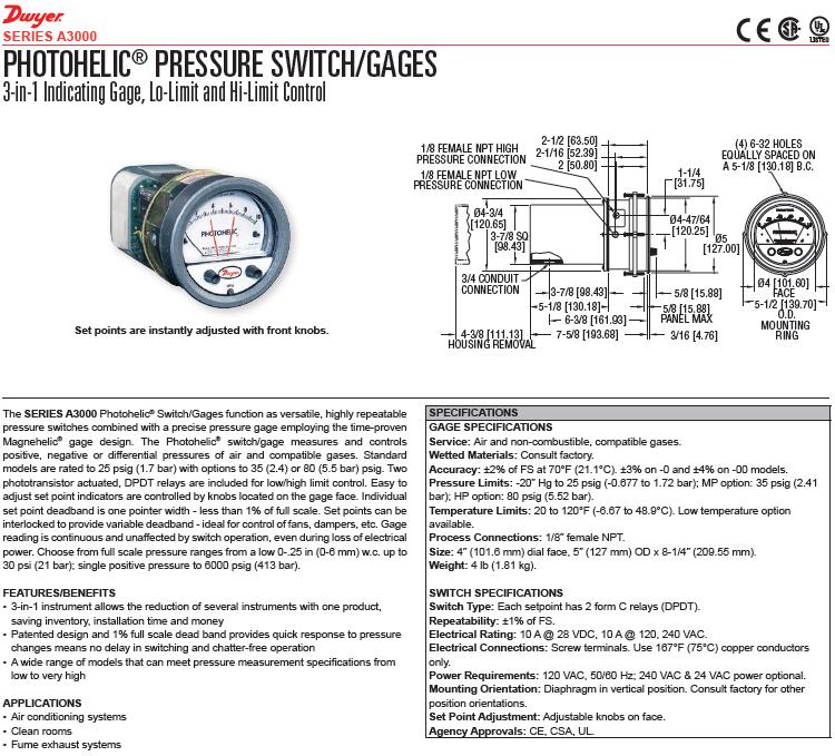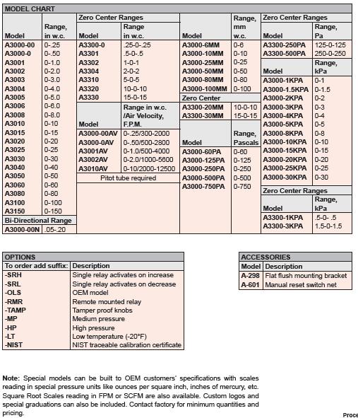 Presostato diferencial American Dwyer A3000-50MM, A3000-80MM, A3000-100MM