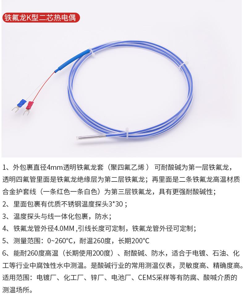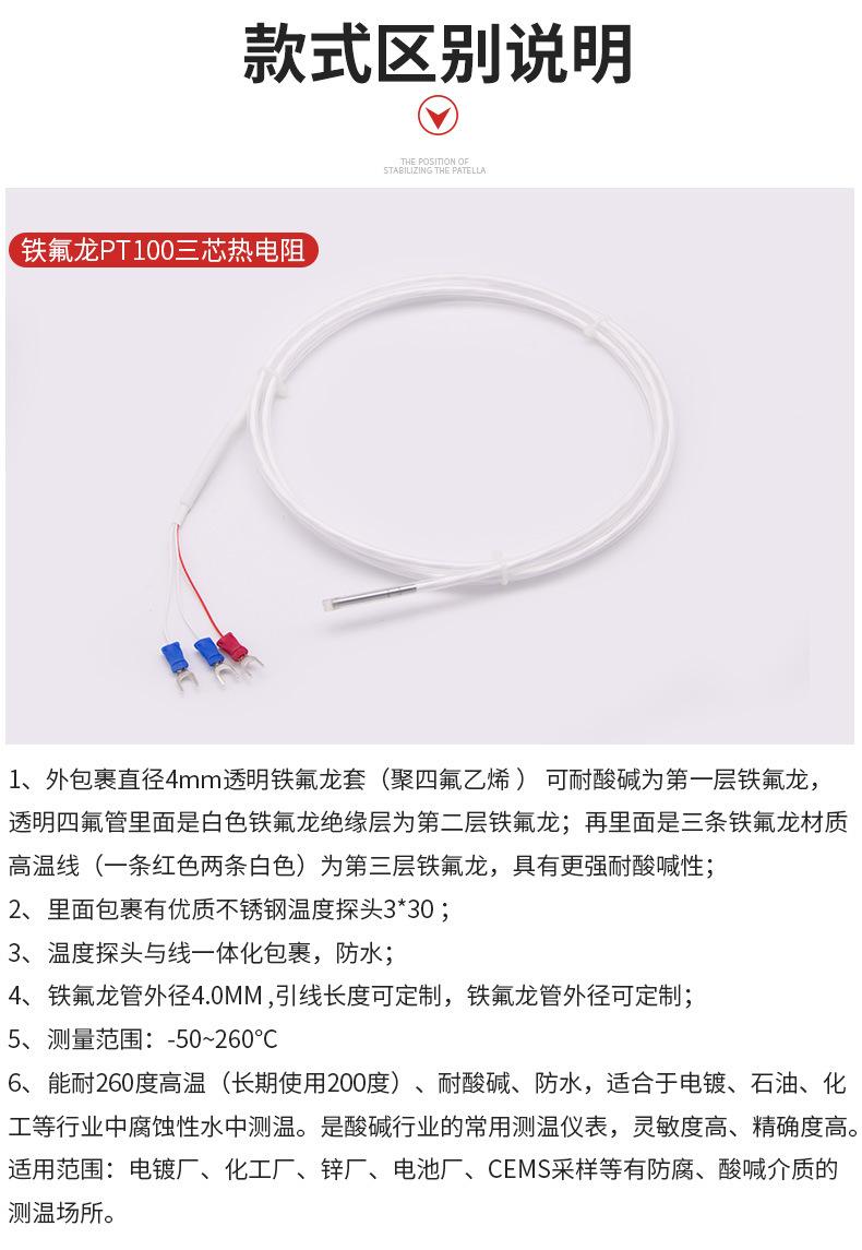 Sensor de temperatura PT100 de termopar tipo K de teflón, resistencia al platino, tetrafluoroetileno, planta química, resistente a la corrosión, sonda resistente a ácidos y álcalis.