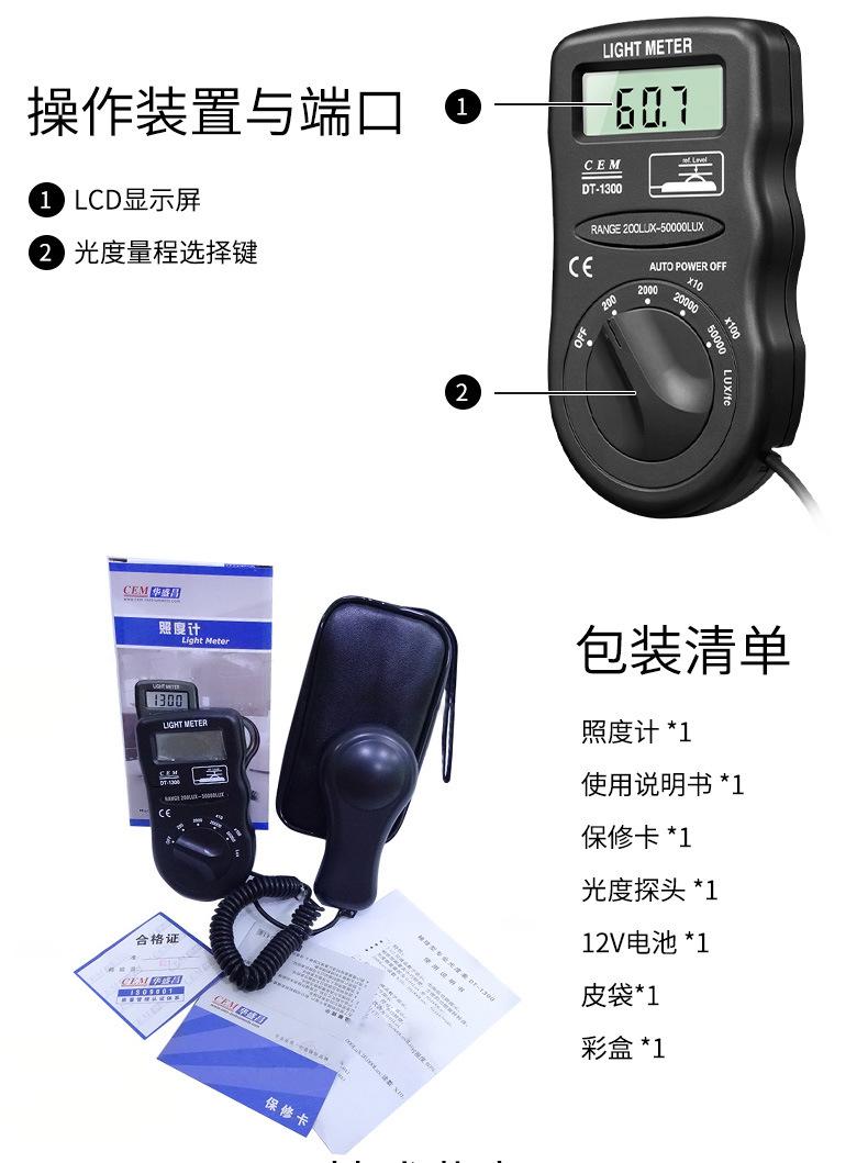Fotómetro portátil CEM Xichang, iluminómetro, luminómetro, fotómetro, iluminómetro DT-1300