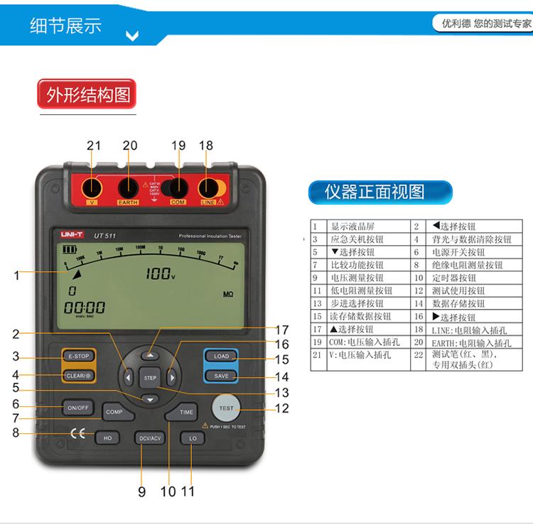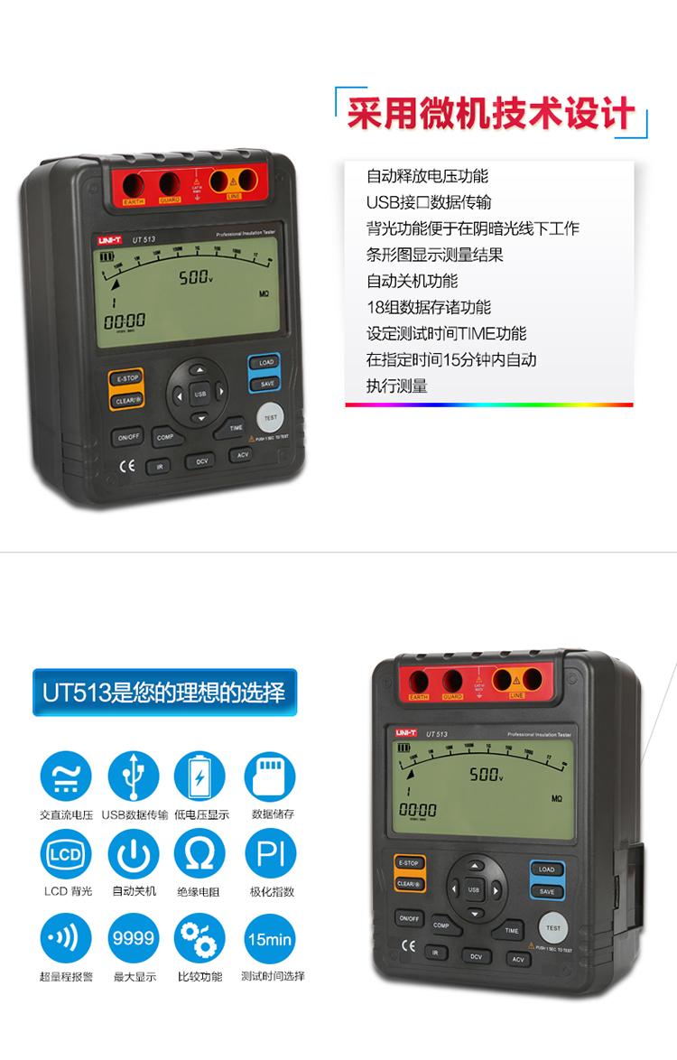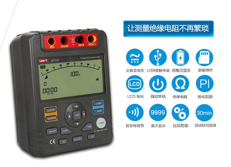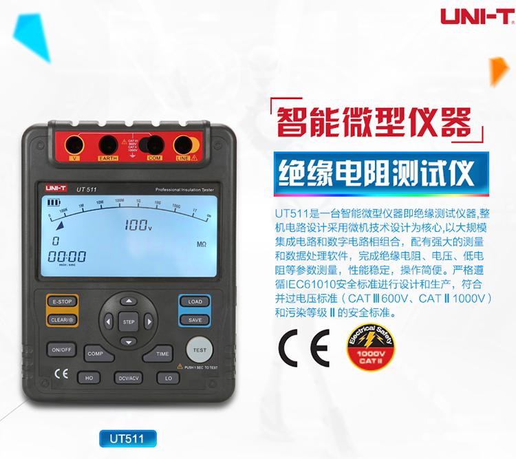 Probador de resistencia de aislamiento Unide 5000v, megóhmetro digital, medidor de resistencia, agitador electrónico UT511