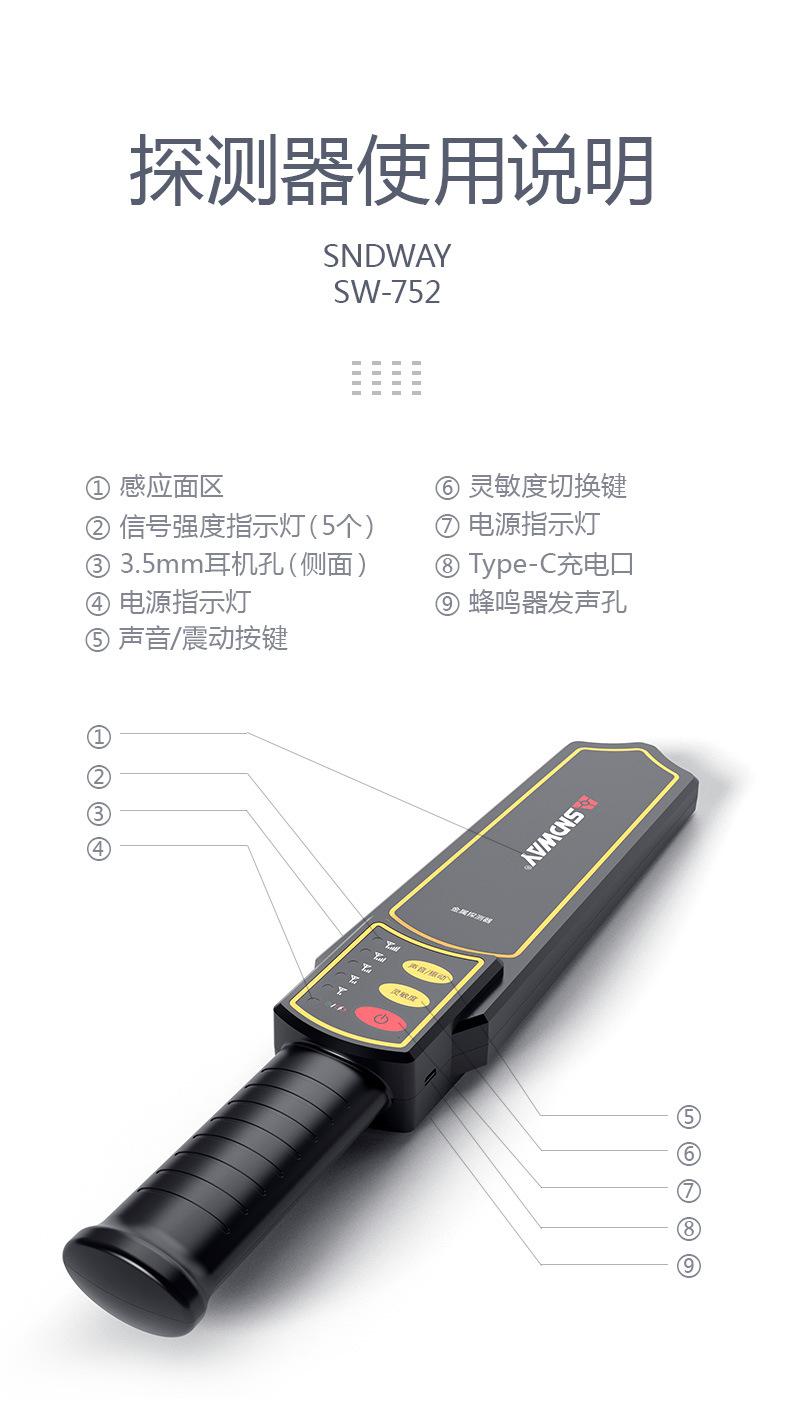 Detector de metales portátil Shendawei de SNDWAY, detector de seguridad para escuelas, estaciones y reuniones. Control de seguridad.