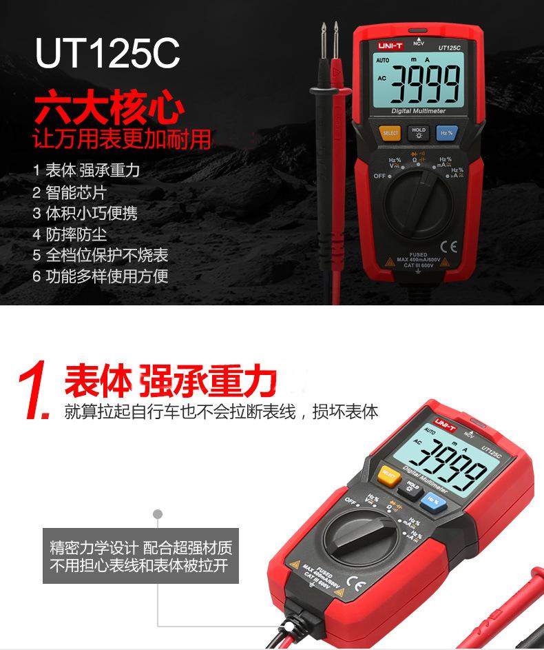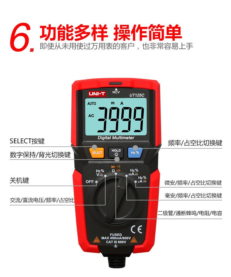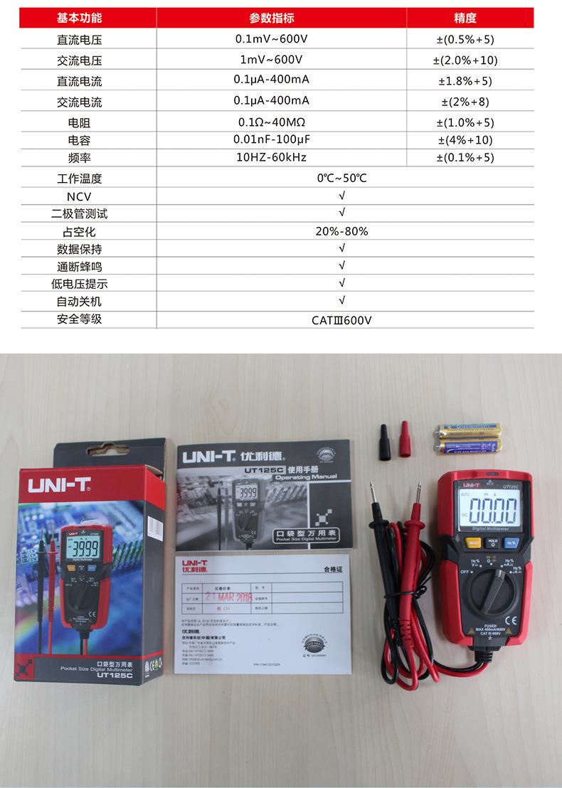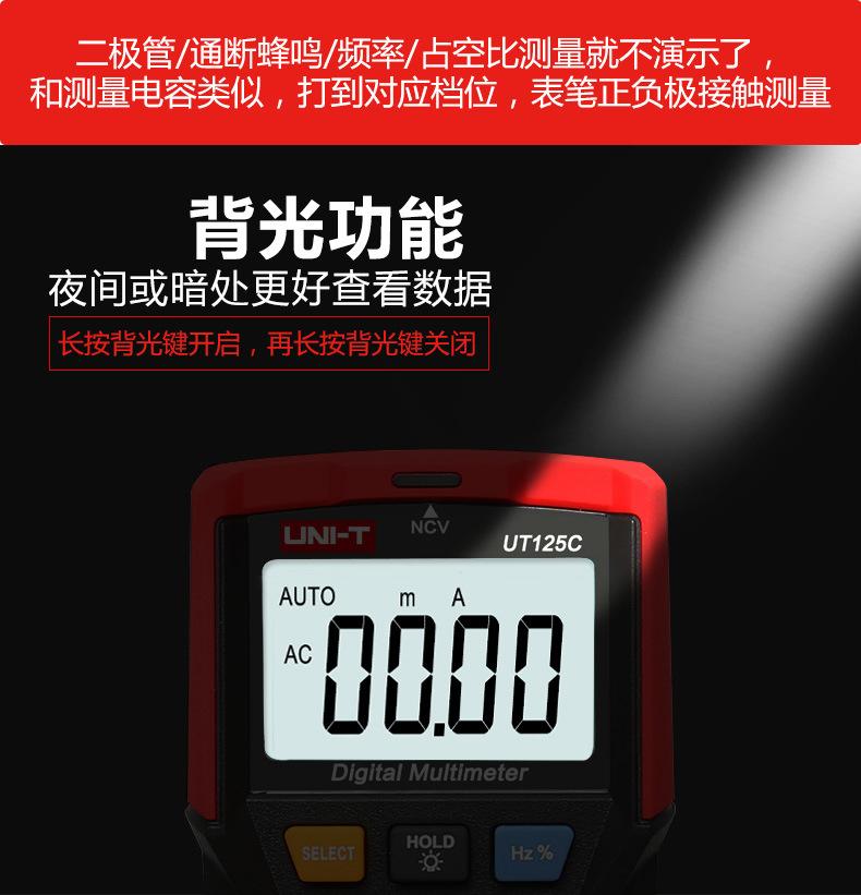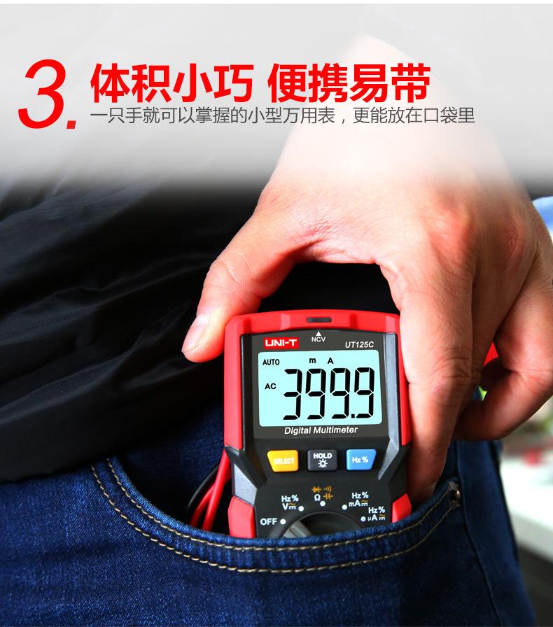 Multímetro digital Uleed UT125C de bolsillo, de alta precisión, con medición automática de capacitancia y voltímetro para electricistas.