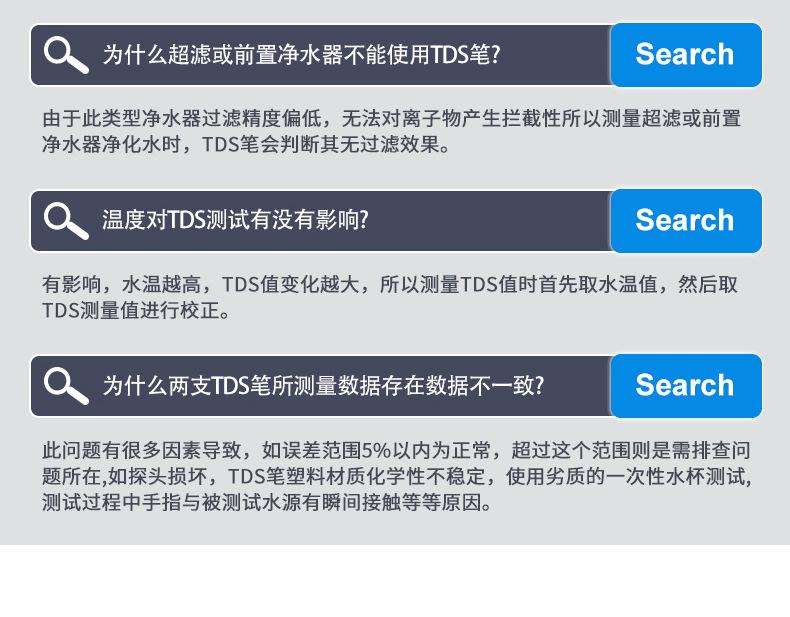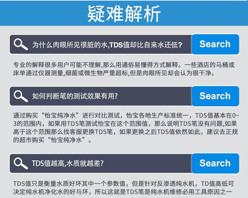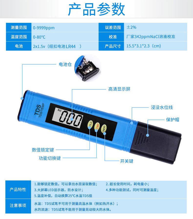 Venta al por mayor de fábrica accesorios para purificador de agua bolígrafo para prueba de calidad del agua doméstica medidor de agua prueba de pureza bolígrafo de prueba TDS