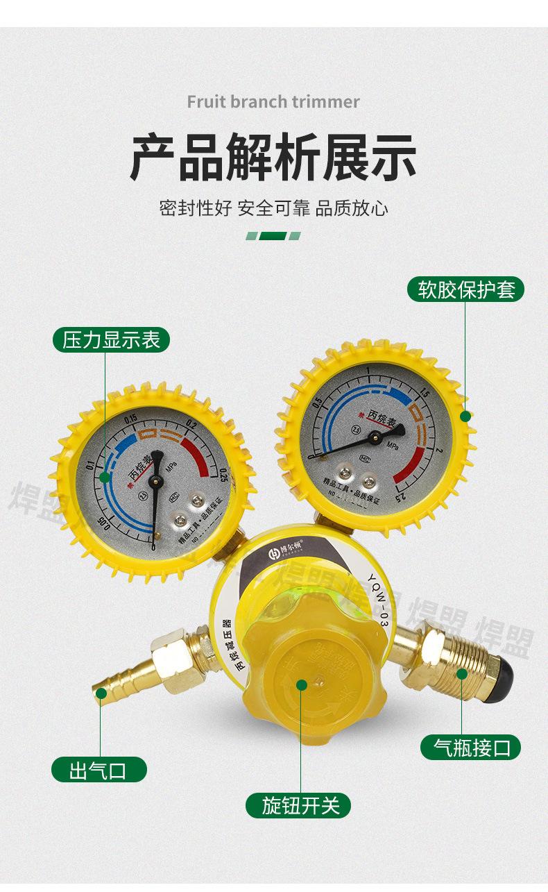 Medidor de oxígeno a prueba de golpes Bolton, medidor de acetileno, válvula reductora de presión de propano, manómetro YQY, válvula reguladora de presión, gran oferta
