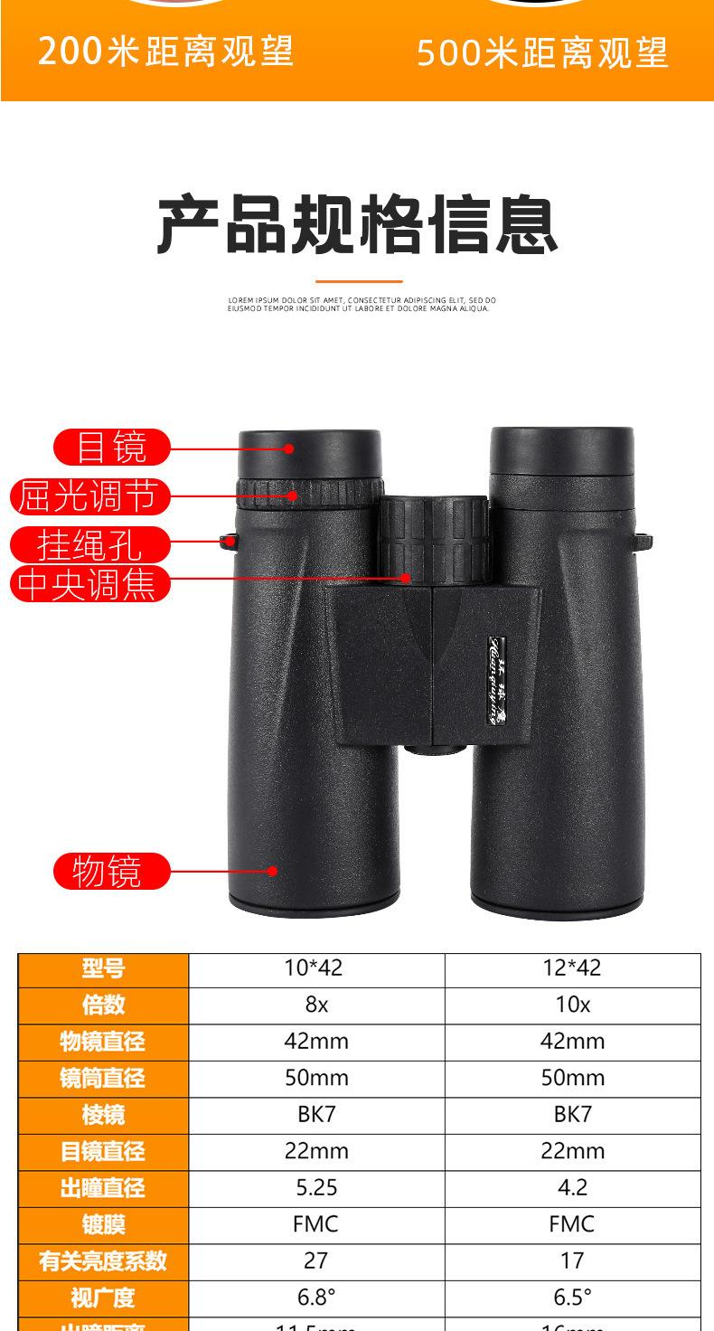 Binoculares de ocular grande 10X42 HD de alta potencia visión nocturna con poca luz concierto cámara telescopio para teléfono móvil