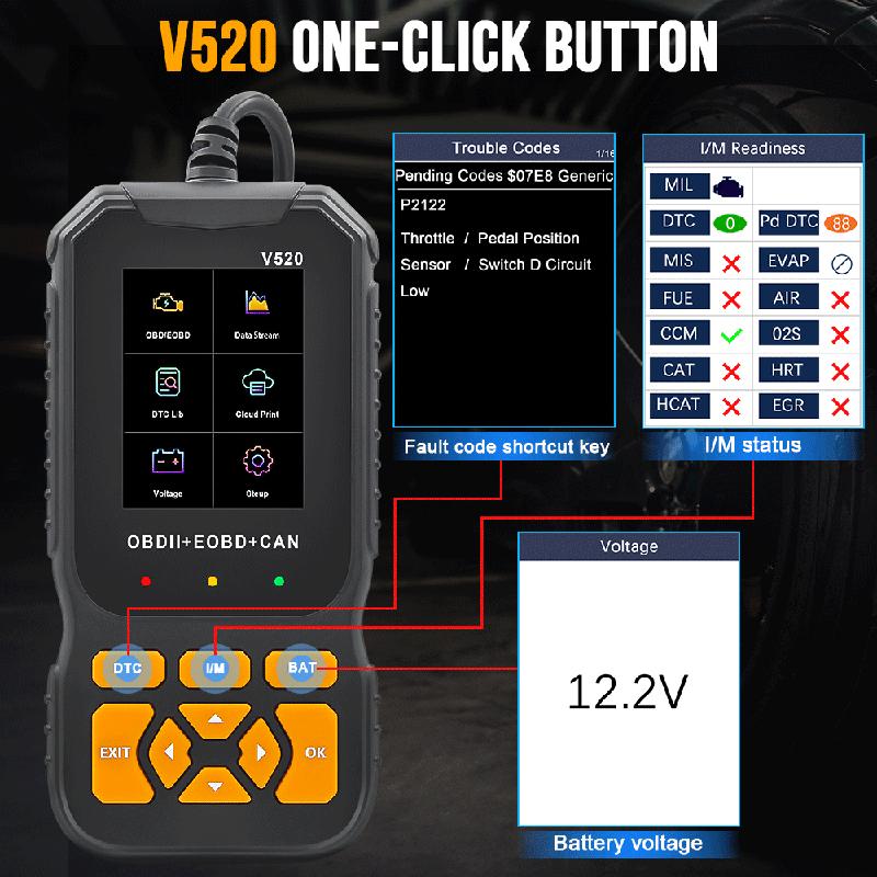 V520 es un producto de tarjeta de lectura de códigos para coches pequeños con las siguientes funciones: