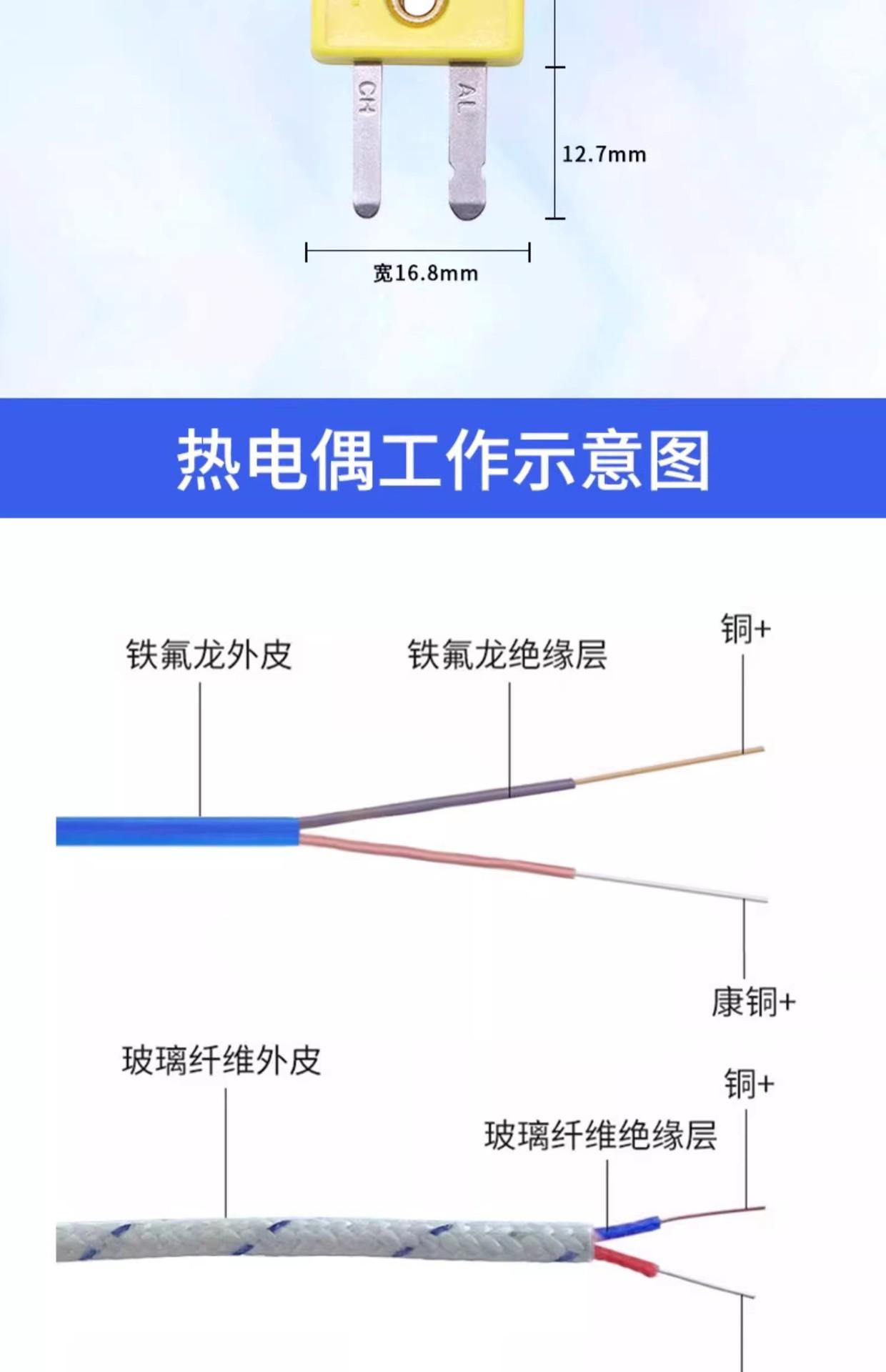 Sonda de Temperatura Tipo K Wrn-02B Sonda de Termómetro Termopar Termómetro Línea de Temperatura