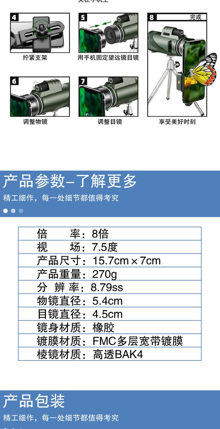 8*40 black ribbon + upgraded tripod + mobile phone clip, 8*40 green ribbon + upgraded tripod + mobile phone cl...