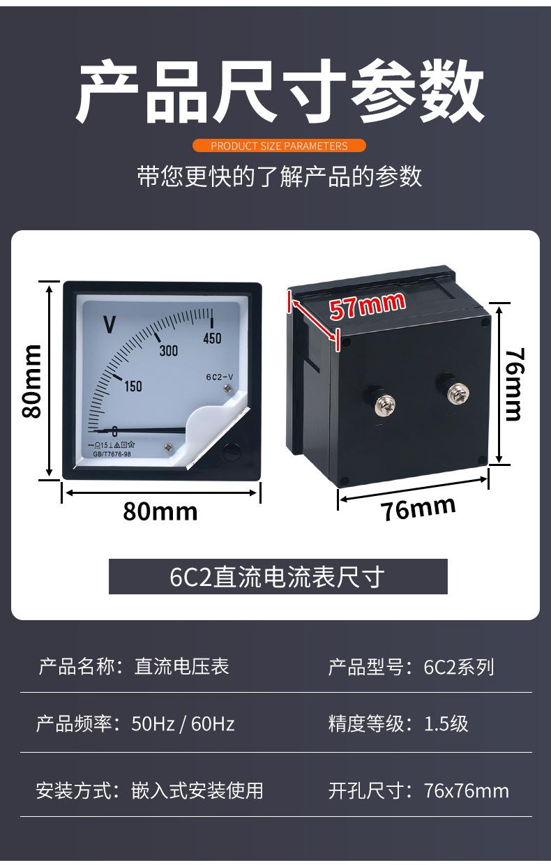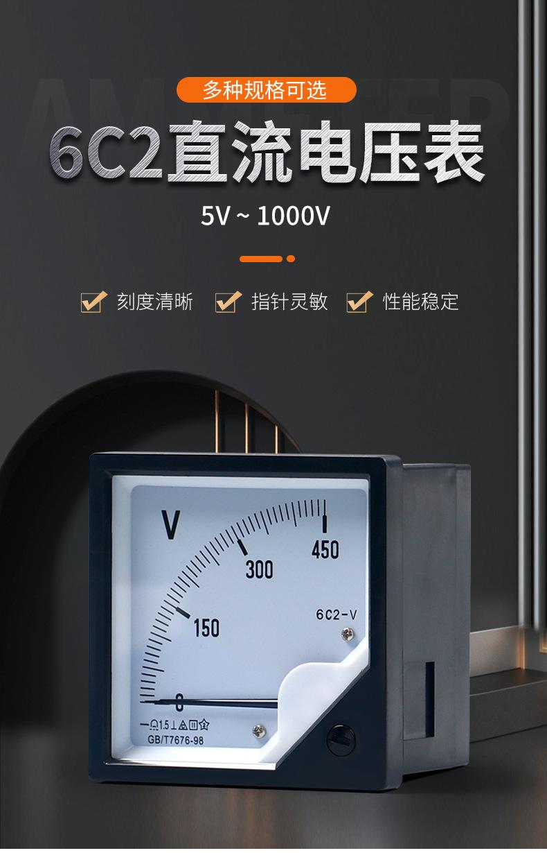 Voltímetro retardante de llama ABS resistente a altas temperaturas, tipo puntero 6C2, voltímetro de CC, instrumento de medición eléctrica, medidor de instalación