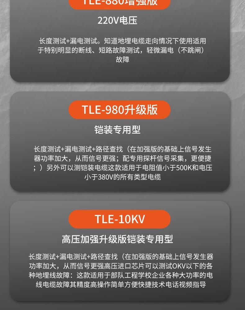 TLE-980 (below 380 cable inspection), TLE-980S (below 380 cable inspection), TLE-10KV (high and low voltage ge...