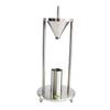 Principio: El polvo cae libremente desde el embudo a una cierta altura y llena el vaso medidor; se mide la masa de polvo por unidad de volumen en el vaso medidor en estado suelto, es decir, la densidad aparente del polvo.
